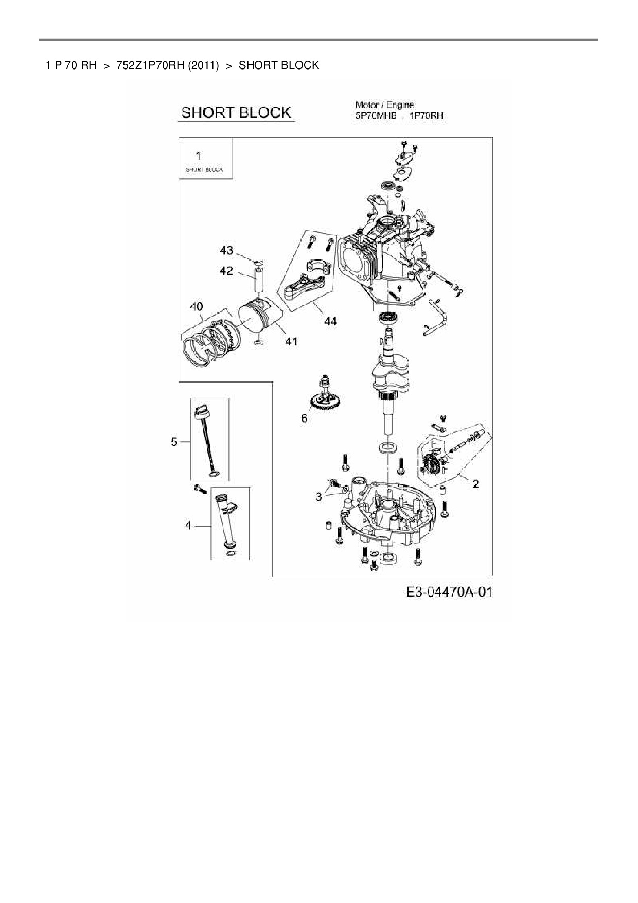 Ersatzteile für Benzinmotor MTD Wolf-Garten 1 P 70 RH aus der Zeichnung Short Block: