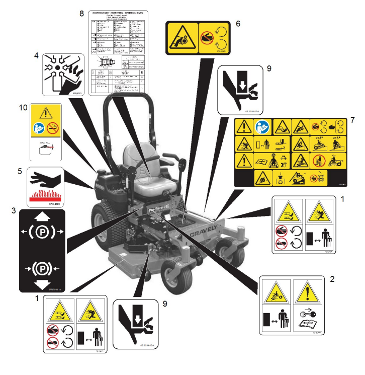 Hier finden Sie alle Ersatzteile von Gravely PRO-TURN-148Z (991300) S.-NR.:020000-029999 Sicherheitsaufkleber: