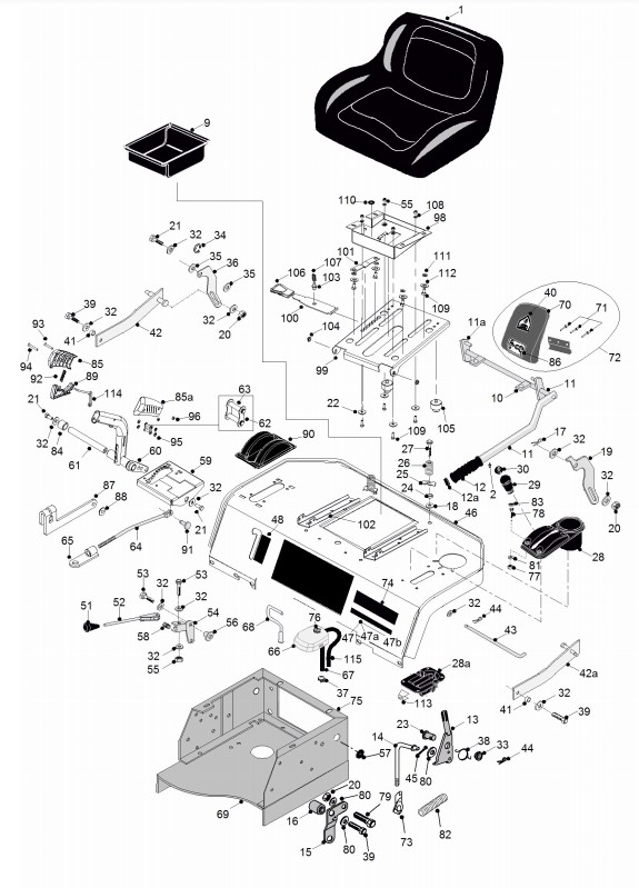 Zeichnung von ECHO-Motorgeräte Rasentraktoren A-Serie A-250KAWA-4WD - E1100005 Sitz, Heck: