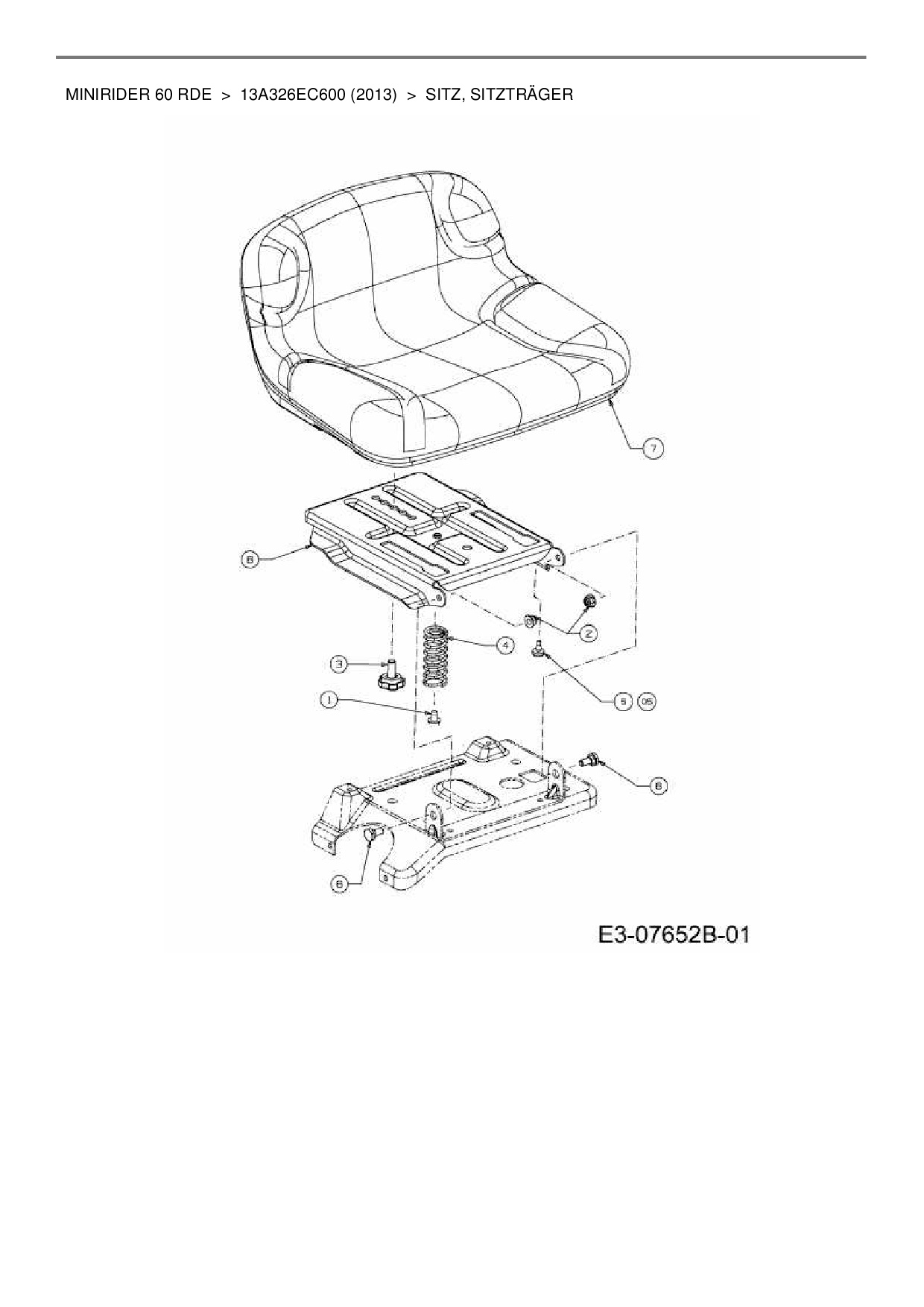 Ersatzteile für Rasentraktor MTD Minirider 60 RDE aus der Zeichnung Sitz, Sitzträger: