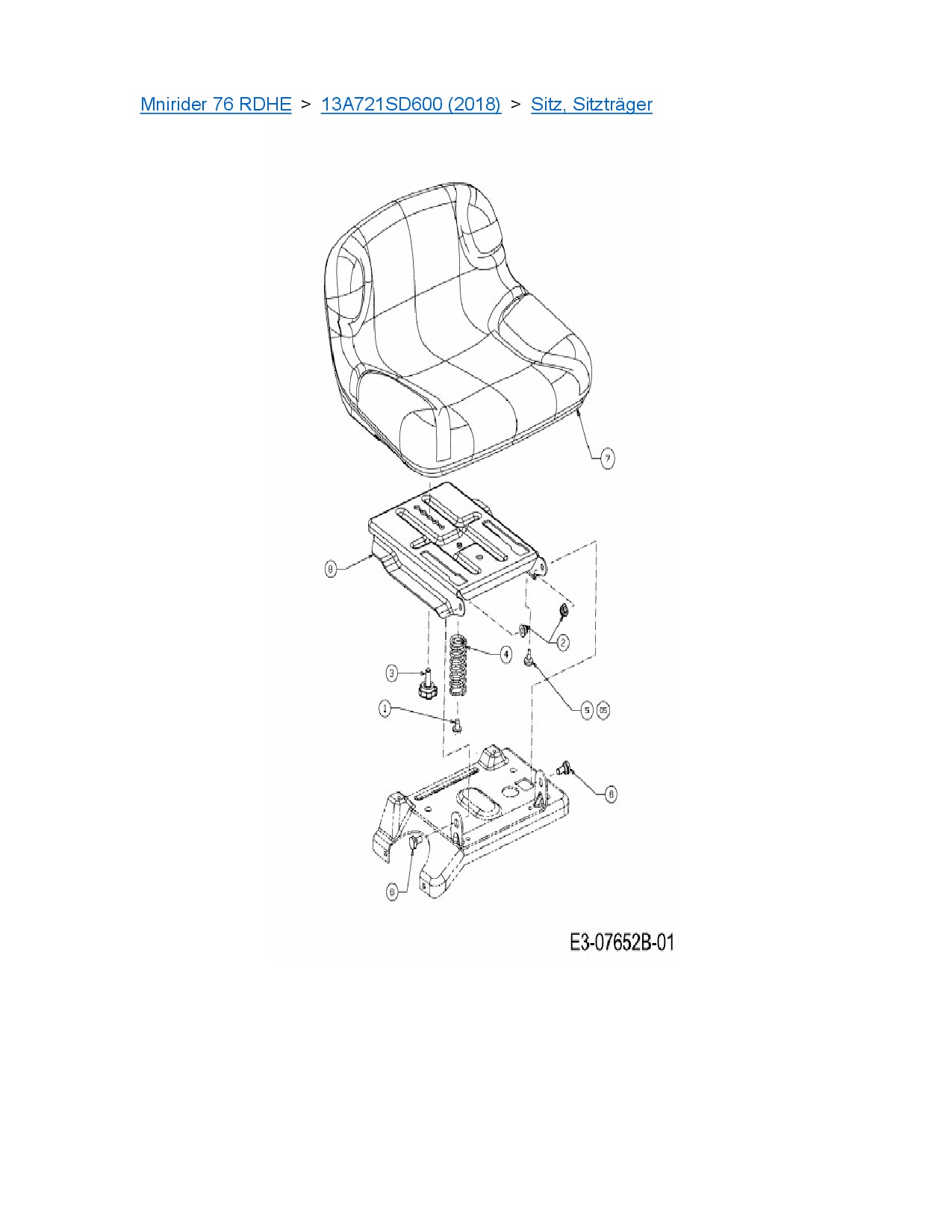 Ersatzteile für Rasentraktor MTD Mnirider 76 RDHE aus der Zeichnung Sitz, Sitzträger: