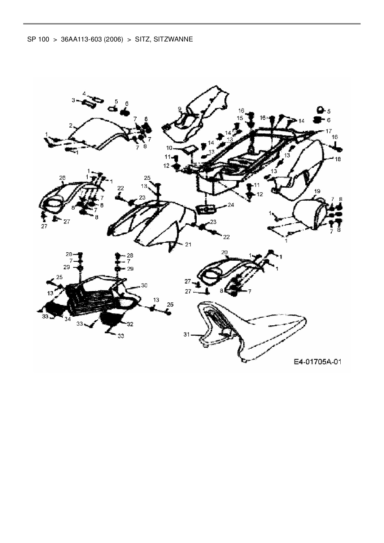 Ersatzteile für Quad Cub Cadet SP 100 aus der Zeichnung Sitz, Sitzwanne: