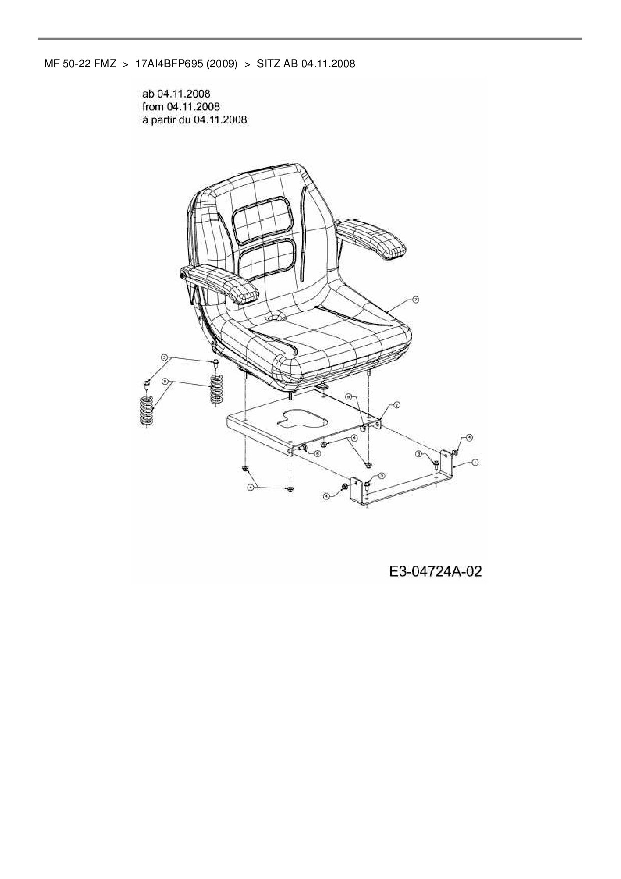 Ersatzteile für Zero Turn Massey Ferguson MF 50-22 FMZ aus der Zeichnung Sitz ab 04.11.2008: