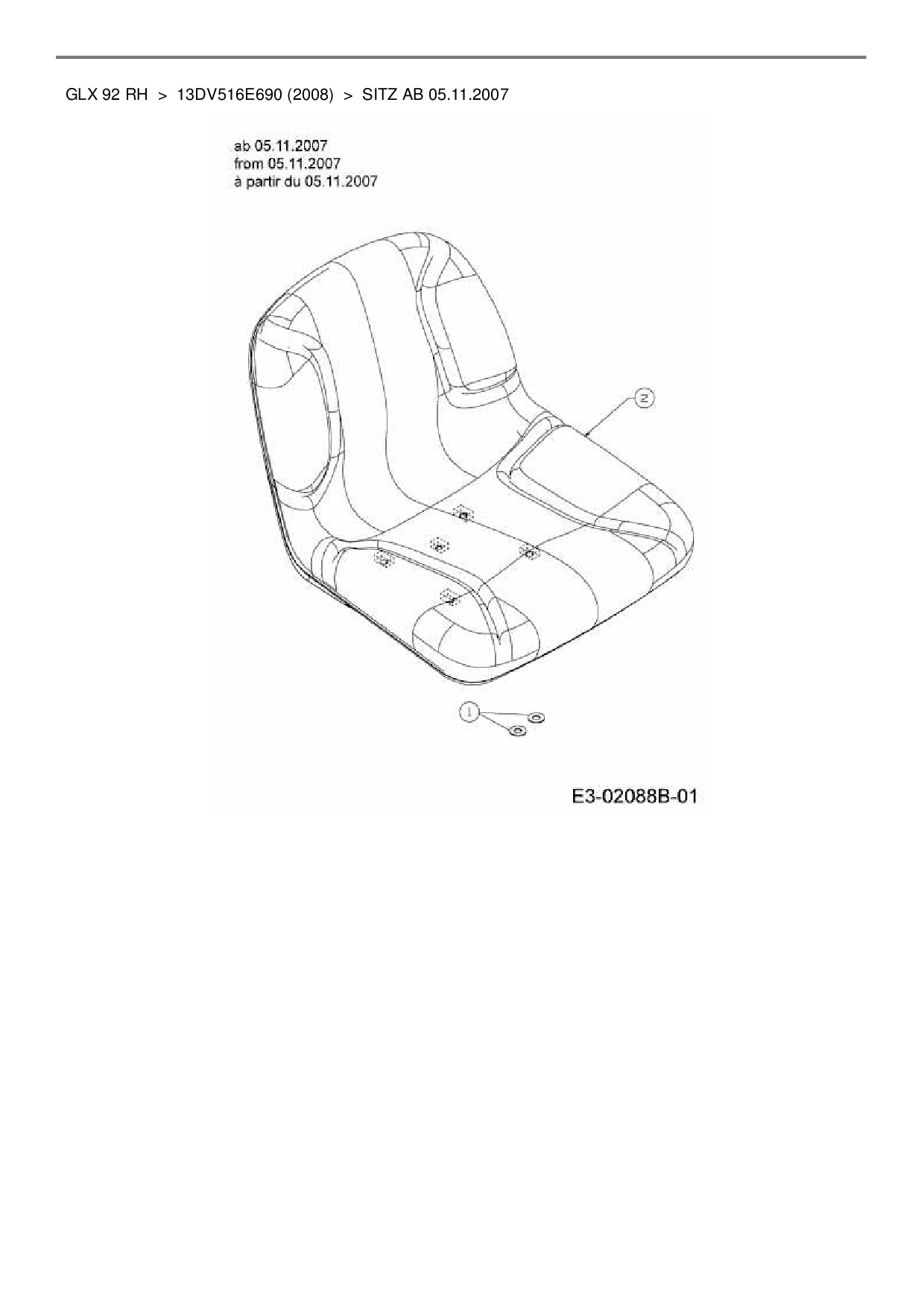 Ersatzteile für Rasentraktor Gutbrod GLX 92 RH aus der Zeichnung Sitz ab 05.11.2007: