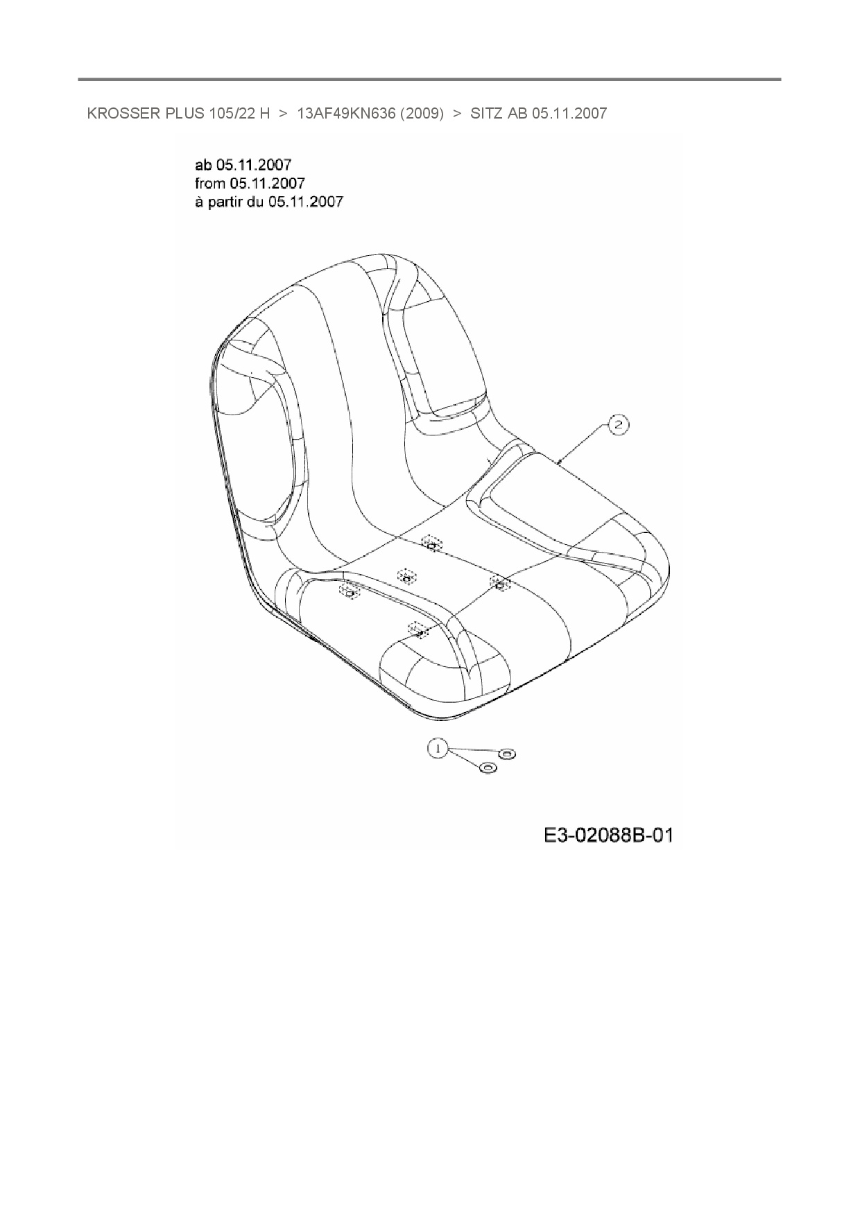 Ersatzteile für Rasentraktor Oleo-Mac Krosser Plus 105/22 H aus der Zeichnung Sitz ab 05.11.2007: