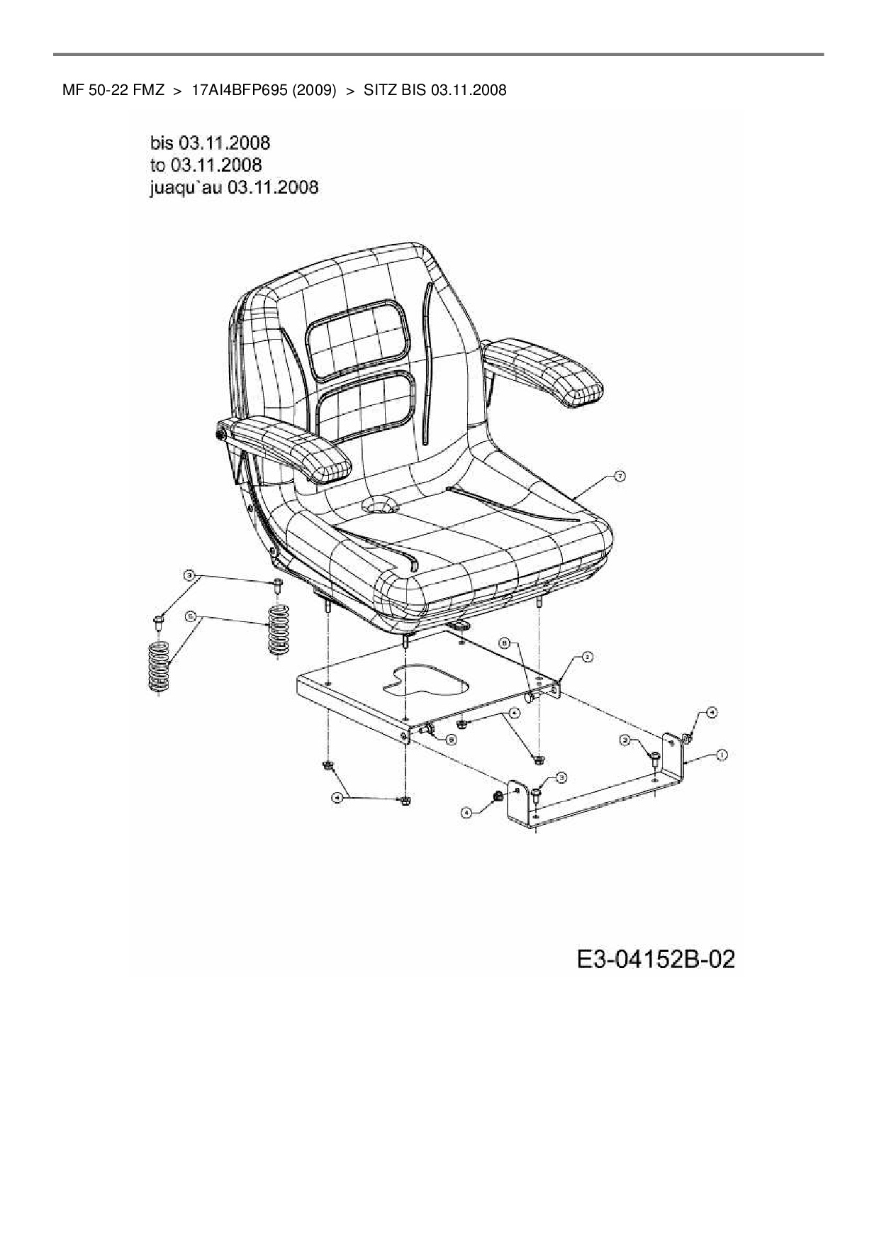 Ersatzteile für Zero Turn Massey Ferguson MF 50-22 FMZ aus der Zeichnung Sitz bis 03.11.2008: