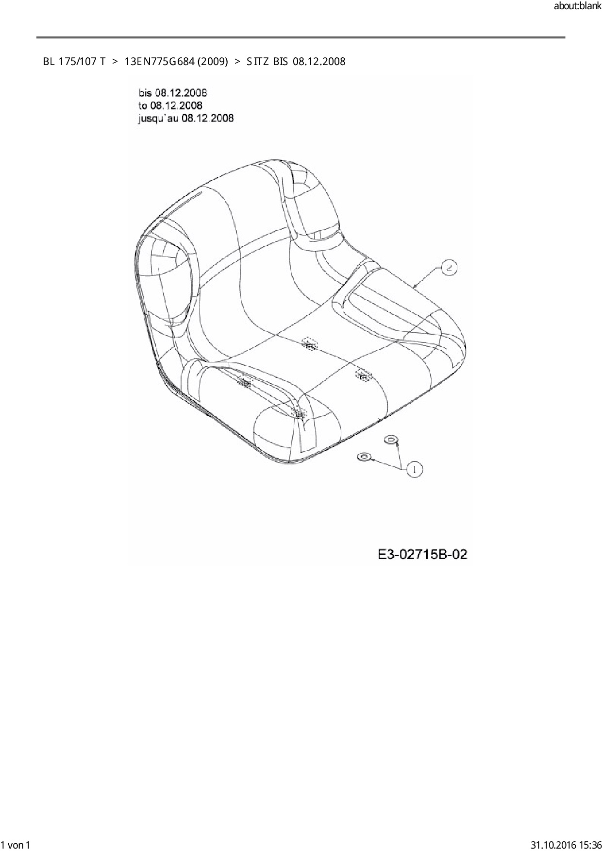 Ersatzteile für Rasentraktor Bolens BL 175/107 T aus der Zeichnung Sitz bis 08.12.2008: