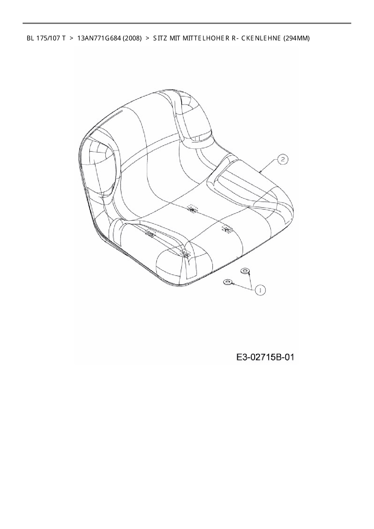 Ersatzteile für Rasentraktor Bolens BL 175/107 T aus der Zeichnung Sitz mit mittelhoher Rückenlehne (294mm):