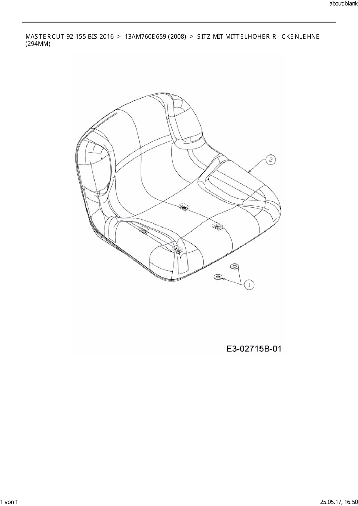 Ersatzteile für Rasentraktor Mastercut Mastercut 92-155 bis 2016 aus der Zeichnung Sitz mit mittelhoher Rückenlehne (294mm):