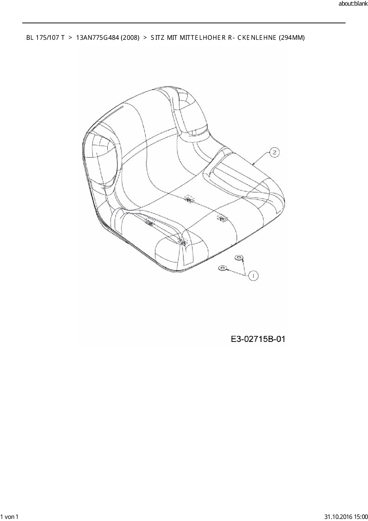 Ersatzteile für Rasentraktor Bolens BL 175/107 T aus der Zeichnung Sitz mit mittelhoher Rückenlehne (294mm):
