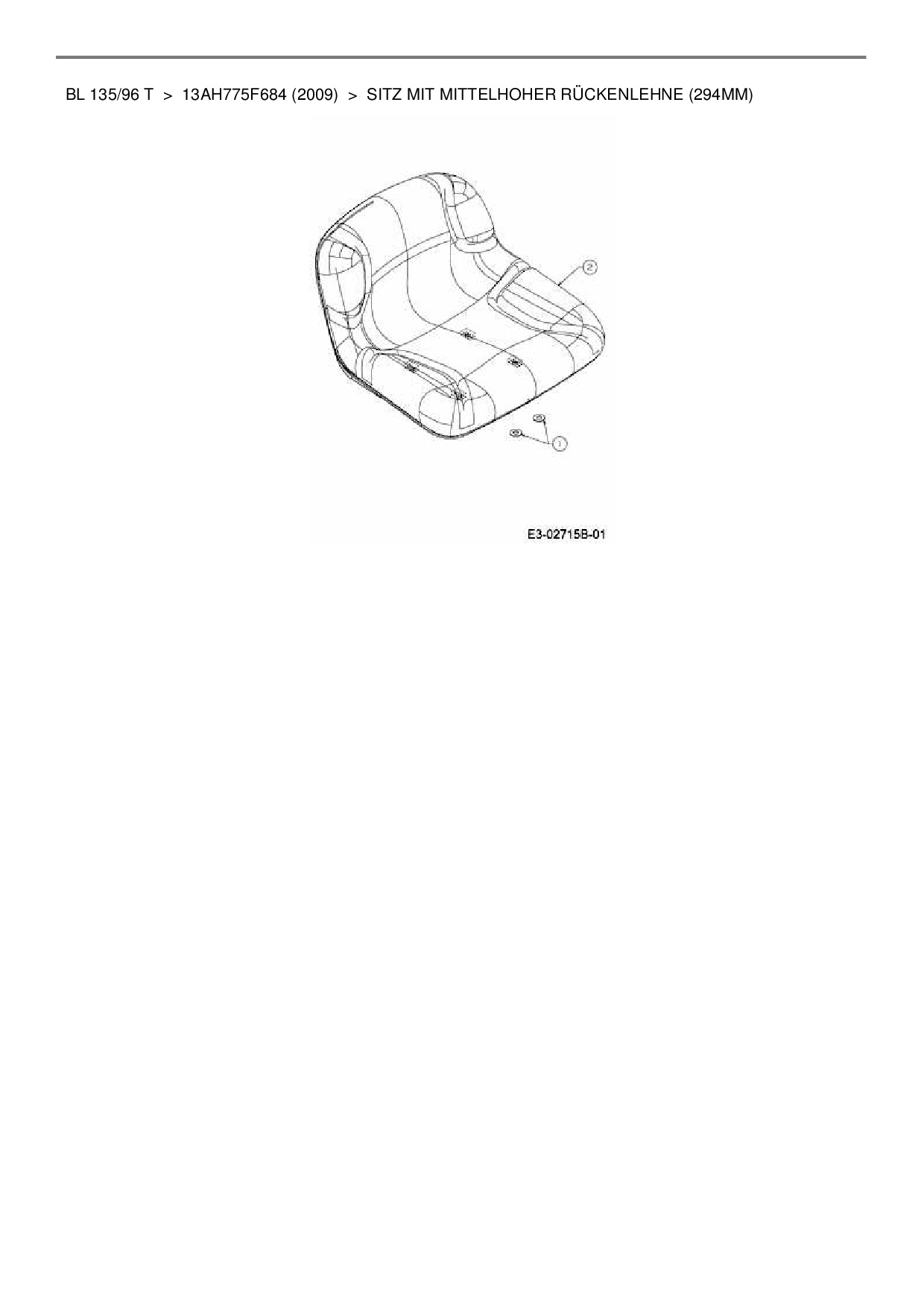 Ersatzteile für Rasentraktor Bolens BL 135/96 T aus der Zeichnung Sitz mit mittelhoher Rückenlehne (294mm):