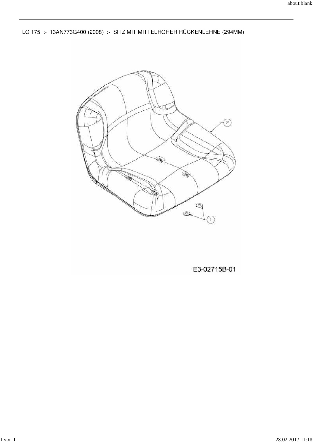 Ersatzteile für Rasentraktor MTD LG 175 aus der Zeichnung Sitz mit mittelhoher Rückenlehne (294mm):