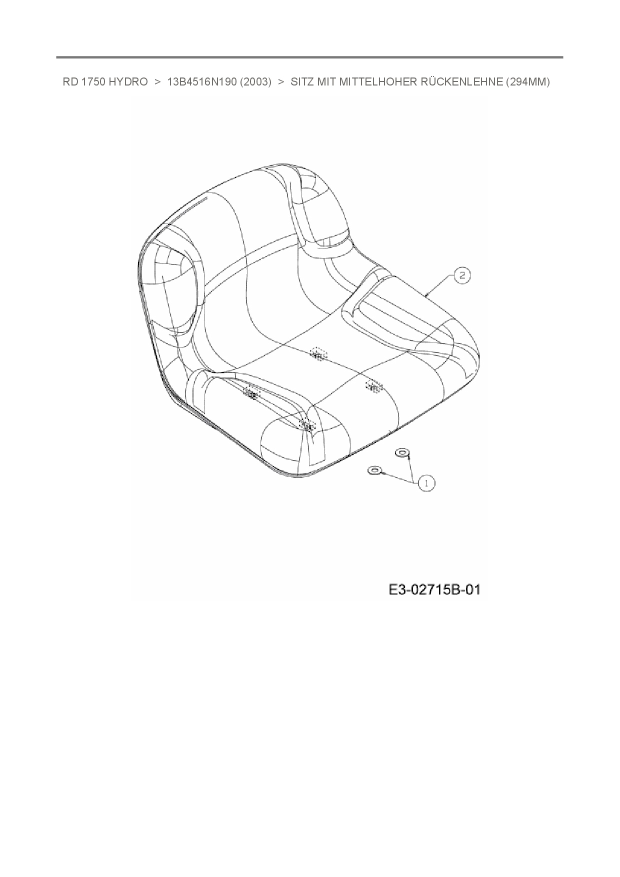 Ersatzteile für Rasentraktor White RD 1750 Hydro aus der Zeichnung Sitz mit mittelhoher Rückenlehne (294mm):