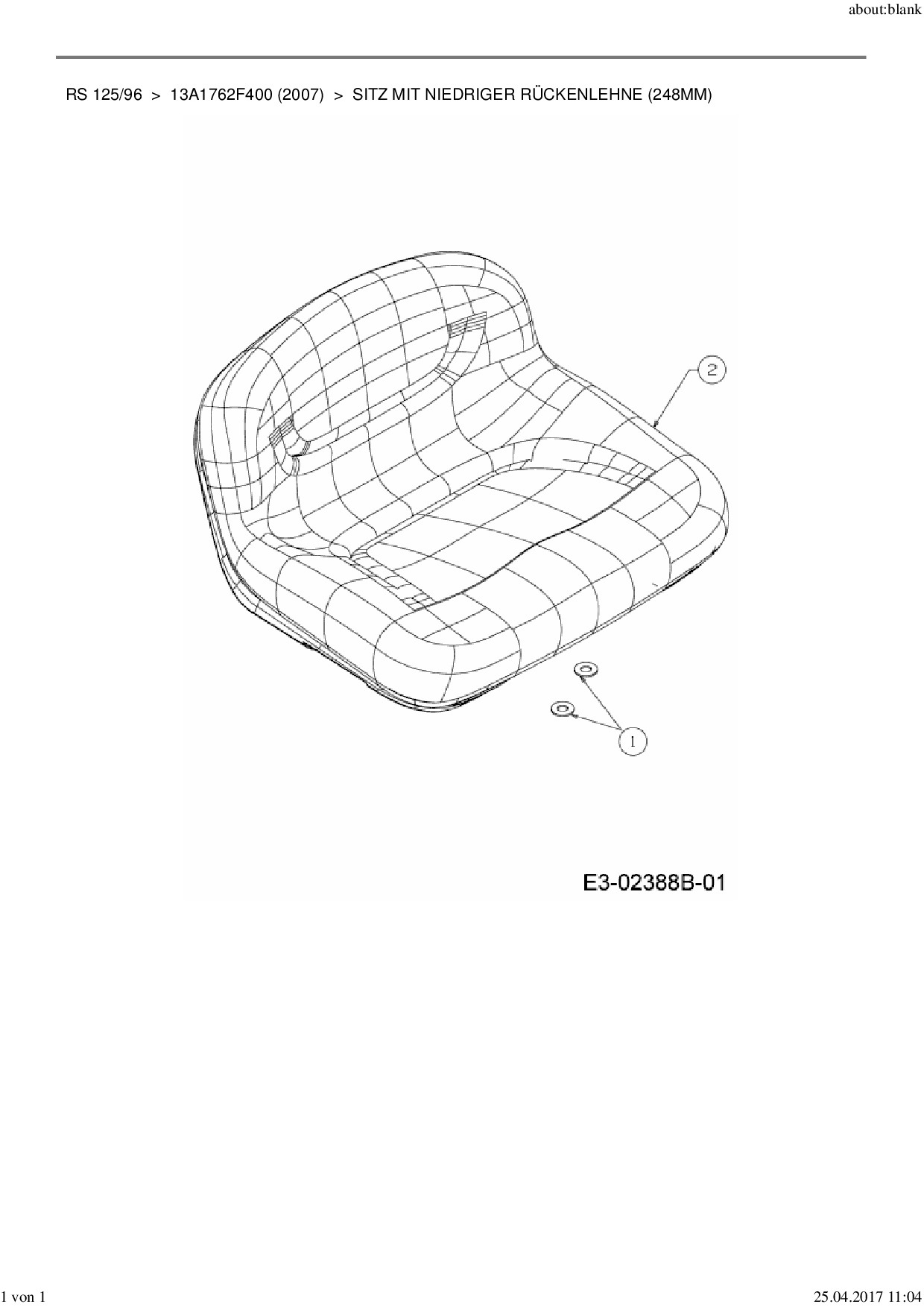 Ersatzteile für Rasentraktor MTD RS 125/96 aus der Zeichnung Sitz mit niedriger Rückenlehne (248mm):