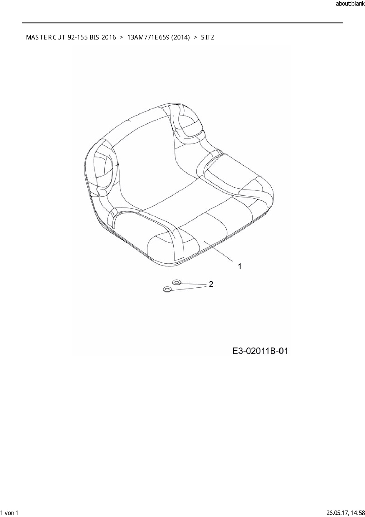 Ersatzteile für Rasentraktor Mastercut Mastercut 92-155 bis 2016 aus der Zeichnung Sitz: