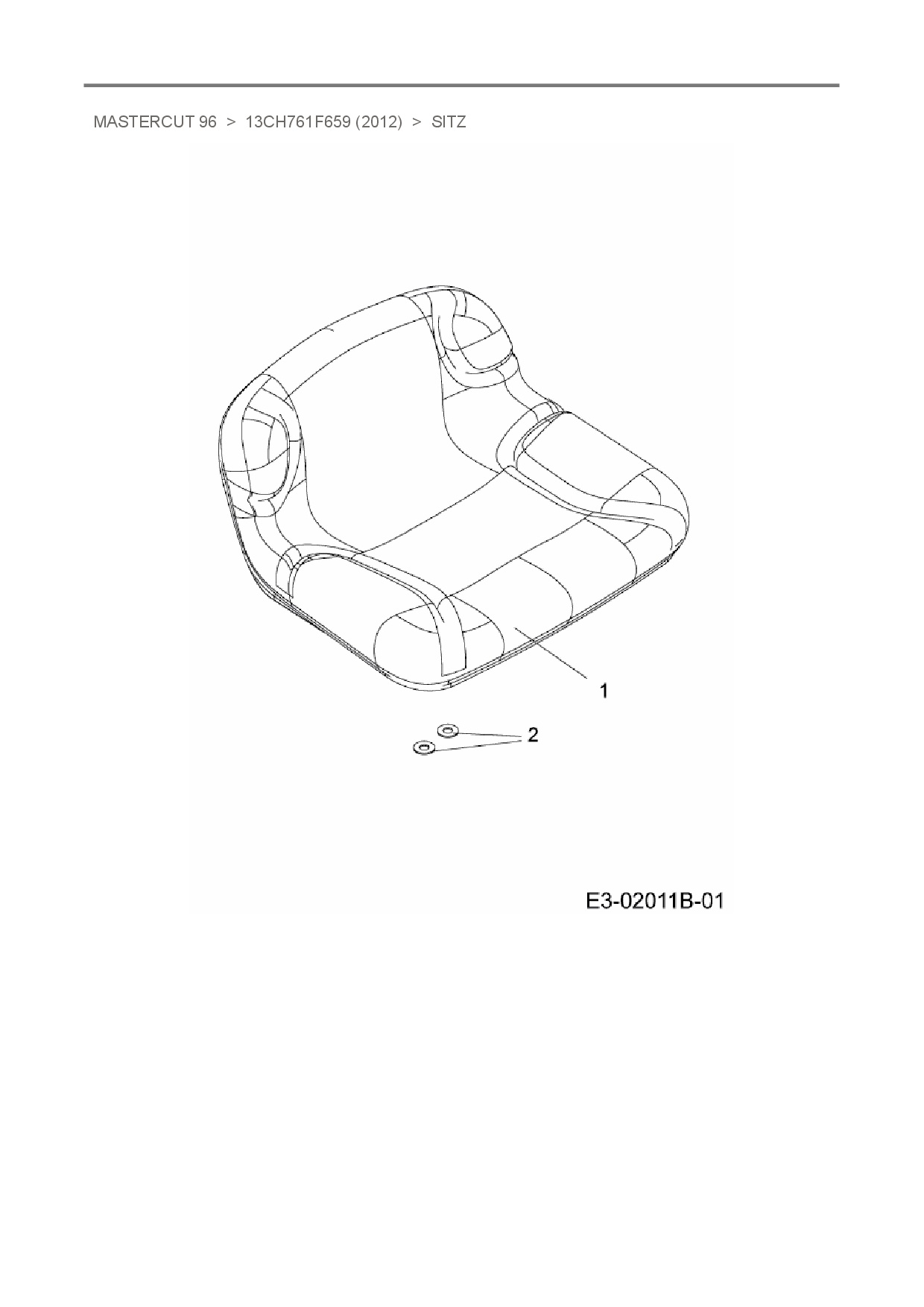 Ersatzteile für Rasentraktor Mastercut Mastercut 96 aus der Zeichnung Sitz:
