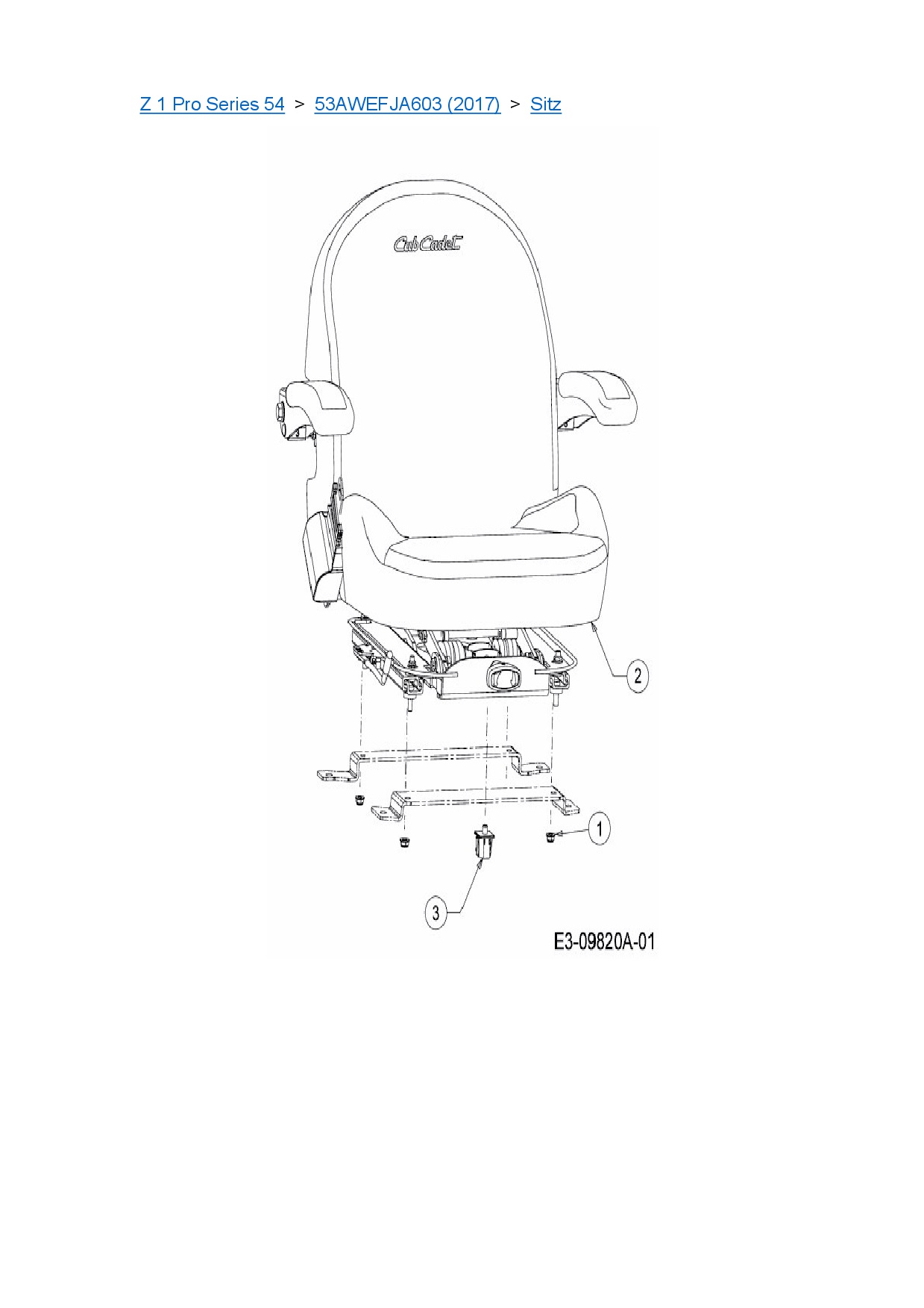 Ersatzteile für Zero Turn Cub Cadet Z 1 Pro Series 54 aus der Zeichnung Sitz:
