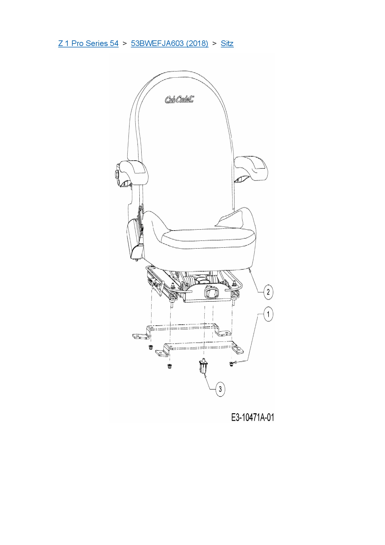 Ersatzteile für Zero Turn Cub Cadet Z 1 Pro Series 54 aus der Zeichnung Sitz: