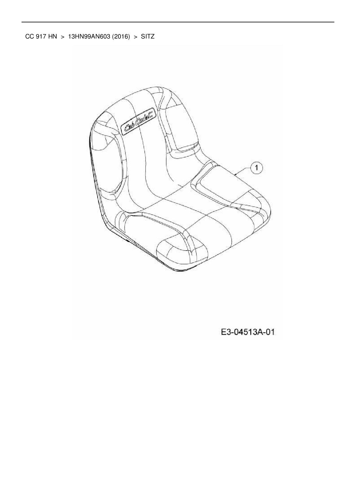 Ersatzteile für Rasentraktor Cub Cadet CC 917 HN aus der Zeichnung Sitz: