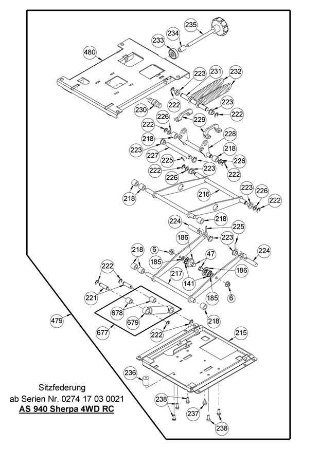 Hier finden Sie alle Ersatzteile von AS-Motor Aufsitzmäher AS 940 Sherpa 4WD RC B&S ab FNr. 027417030021 aus dem Zeichnungsblatt Sitzfederung ab FNr. 027417030021: