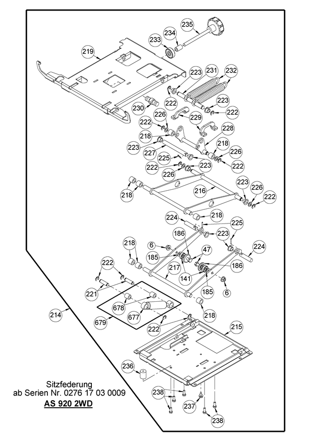 Hier finden Sie alle Ersatzteile von AS-Motor Aufsitzmäher AS 920 Sherpa 2WD B&S ab FNr. 027617030009 aus dem Zeichnungsblatt Sitzfederung ab FNr. 027617030009: