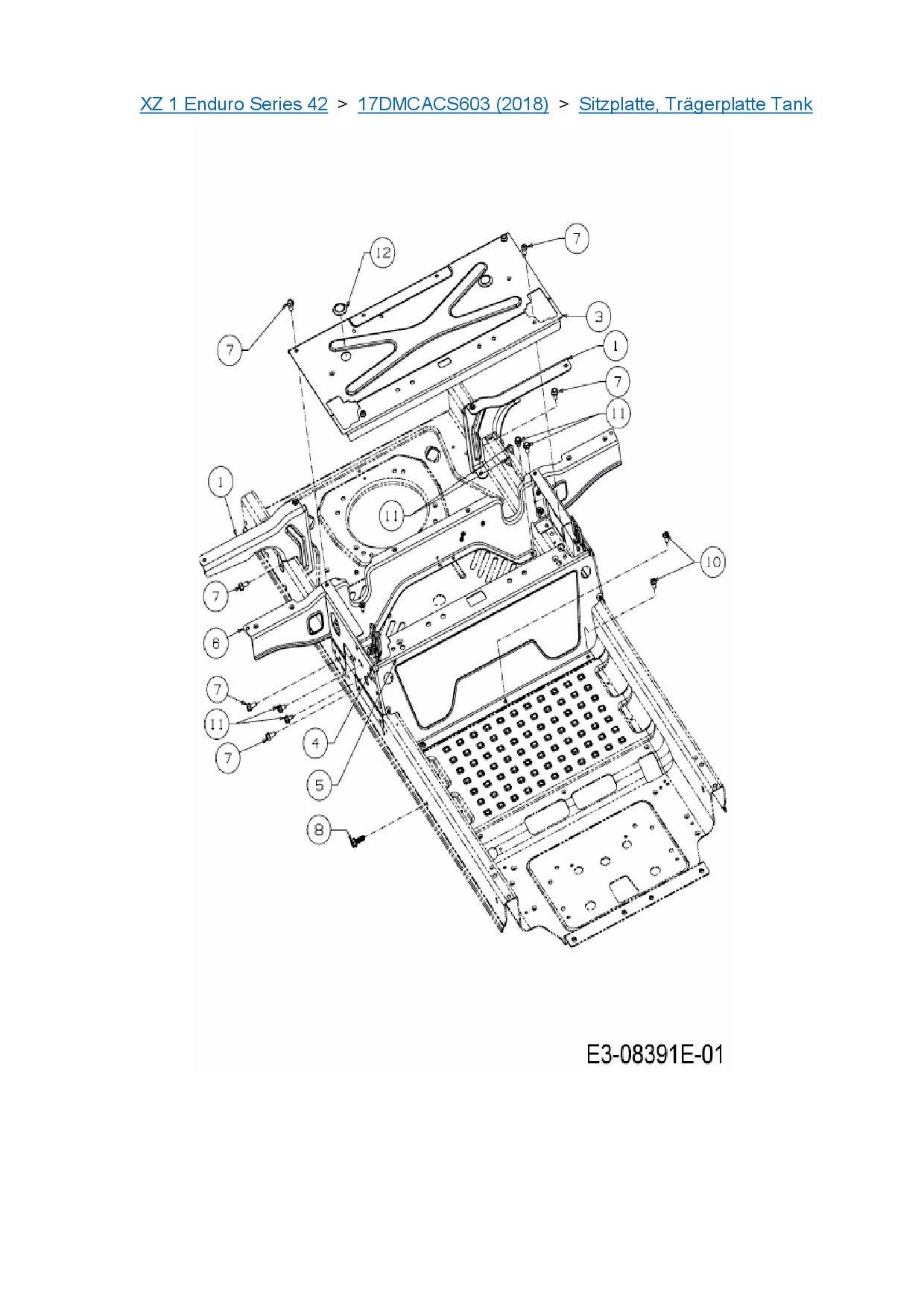 Ersatzteile für Zero Turn Cub Cadet XZ 1 Enduro Series 42 aus der Zeichnung Sitzplatte, Trägerplatte Tank: