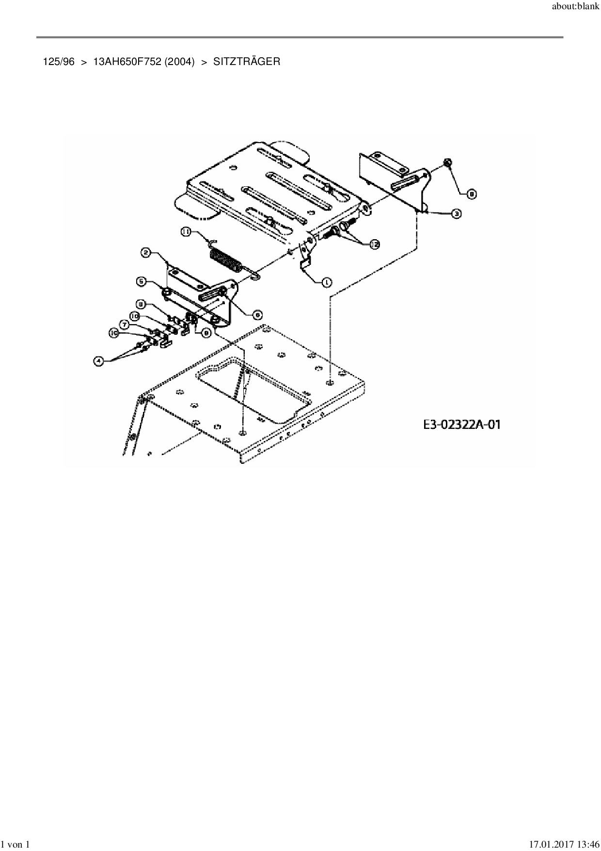 Ersatzteile für Rasentraktor MTD 125/96 aus der Zeichnung Sitzträger 1: