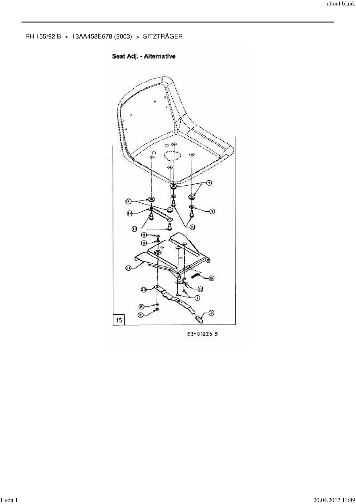 Ersatzteile für Rasentraktor MTD RH 155/92 B aus der Zeichnung Sitzträger 1:
