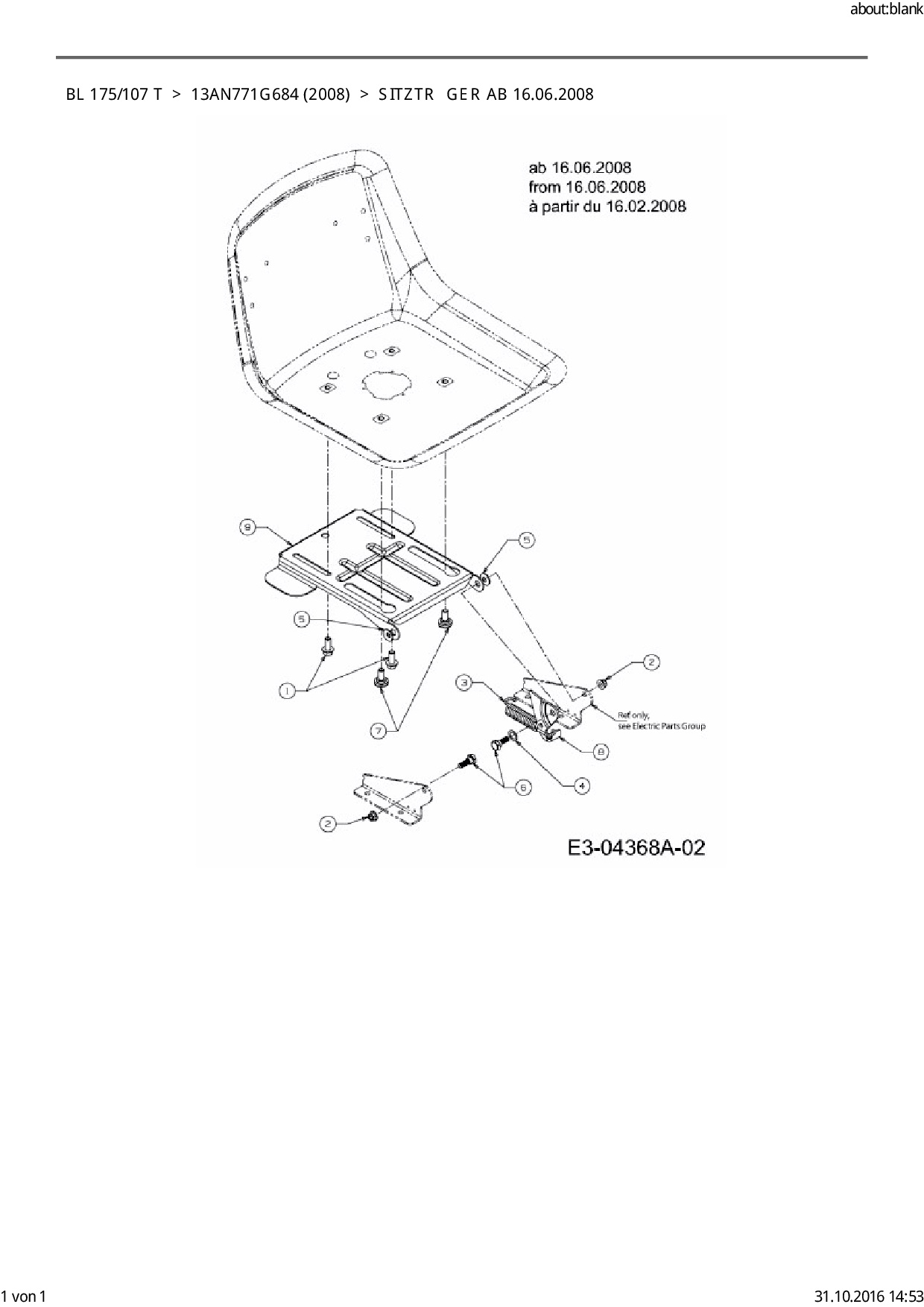 Ersatzteile für Rasentraktor Bolens BL 175/107 T aus der Zeichnung Sitzträger ab 16.06.2008:
