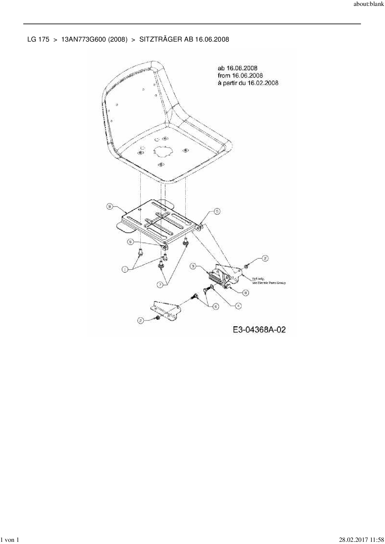 Ersatzteile für Rasentraktor MTD LG 175 aus der Zeichnung Sitzträger ab 16.06.2008:
