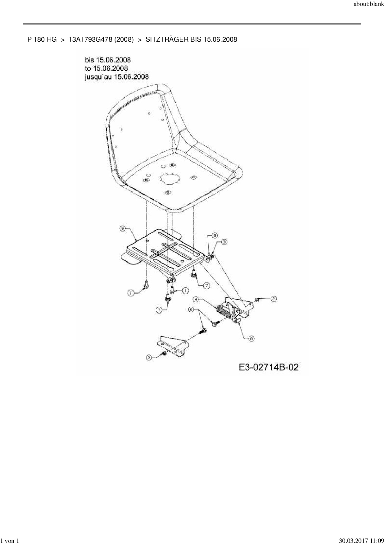 Ersatzteile für Rasentraktor MTD P 180 HG aus der Zeichnung Sitzträger bis 15.06.2008: