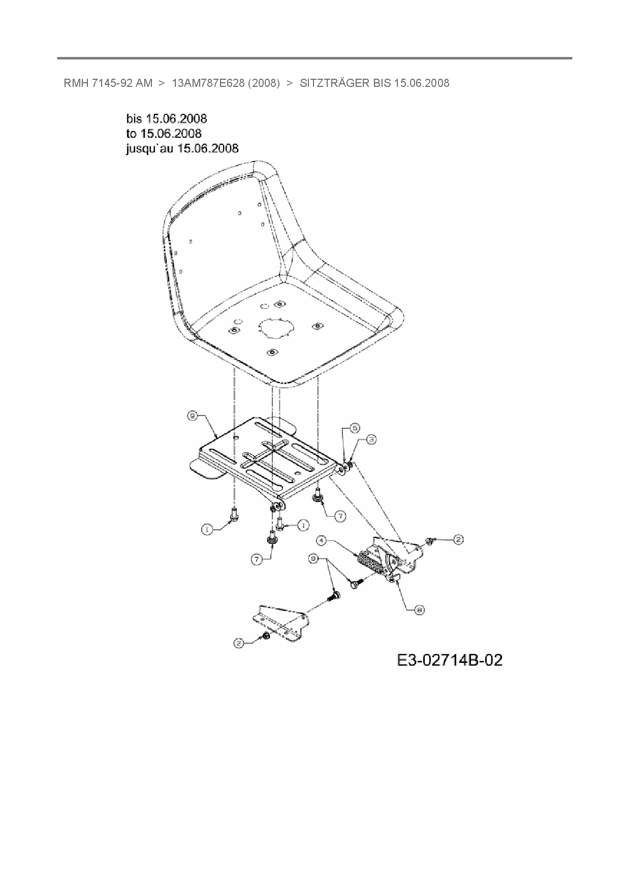 Ersatzteile für Rasentraktor Raiffeisen RMH 7145-92 AM aus der Zeichnung Sitzträger bis 15.06.2008: