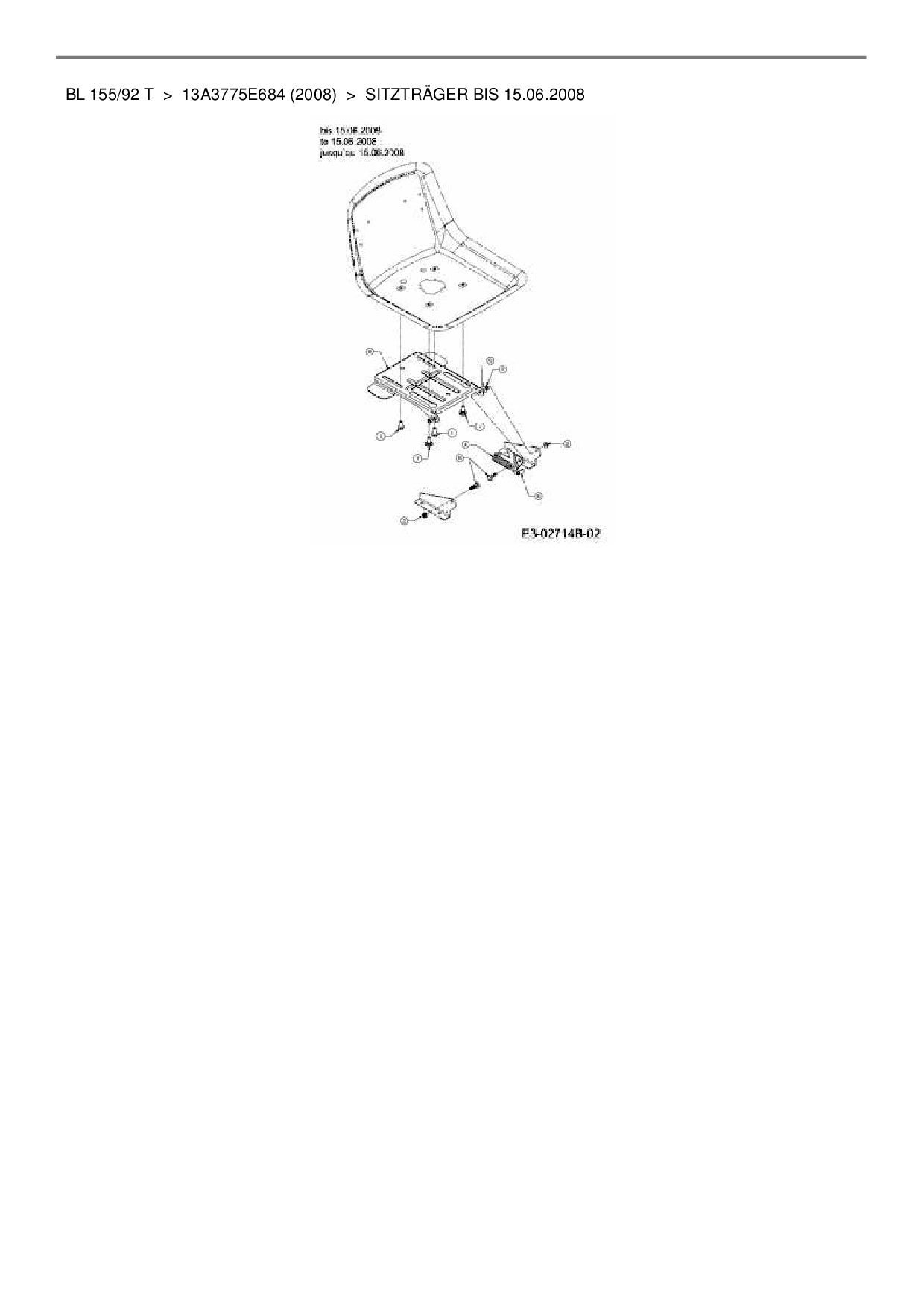 Ersatzteile für Rasentraktor Bolens BL 155/92 T aus der Zeichnung Sitzträger bis 15.06.2008: