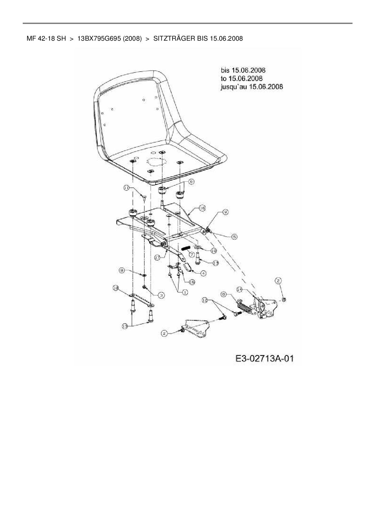 Ersatzteile für Rasentraktor Massey Ferguson MF 42-18 SH aus der Zeichnung Sitzträger bis 15.06.2008: