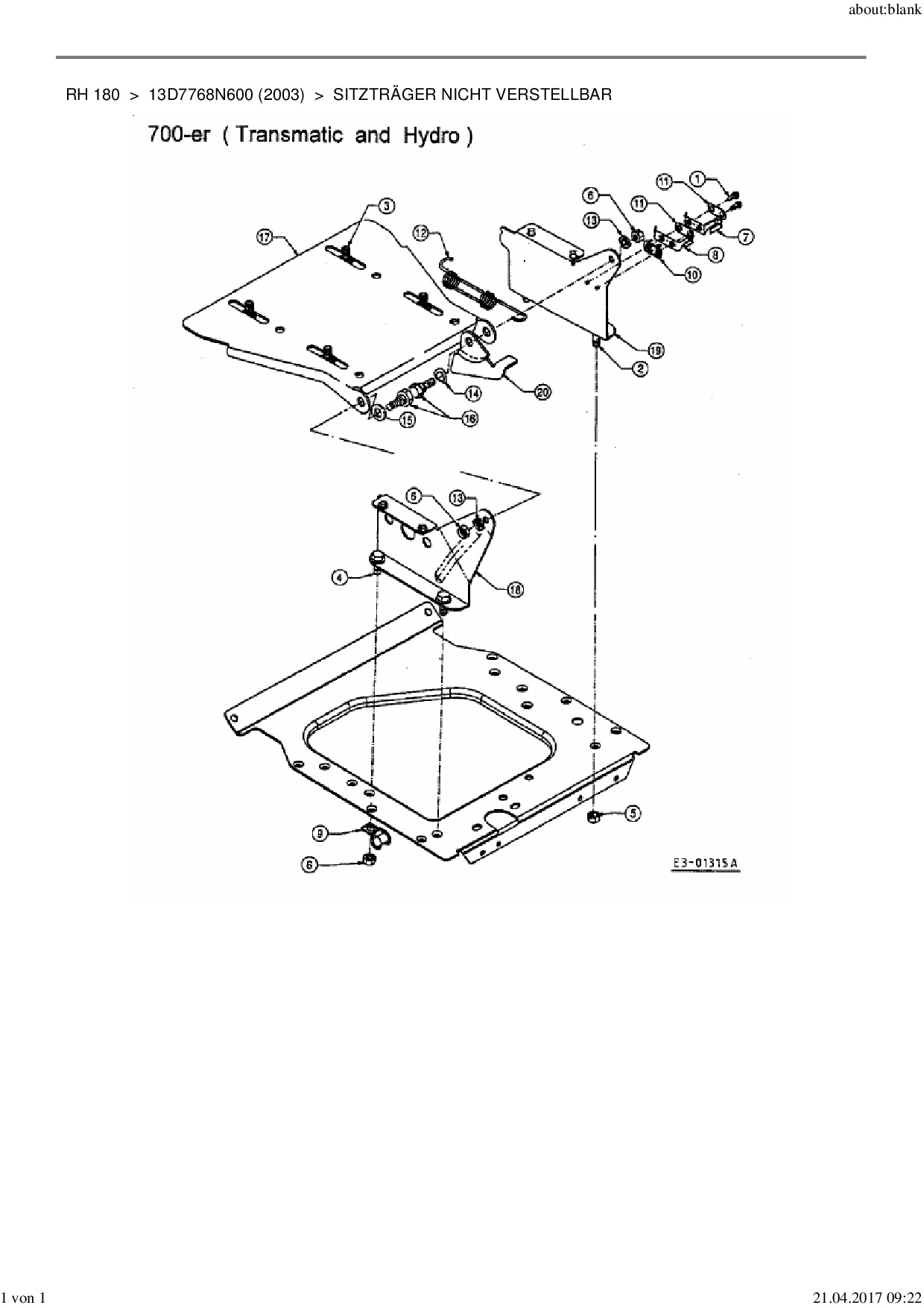 Ersatzteile für Rasentraktor MTD RH 180 aus der Zeichnung Sitzträger nicht verstellbar: