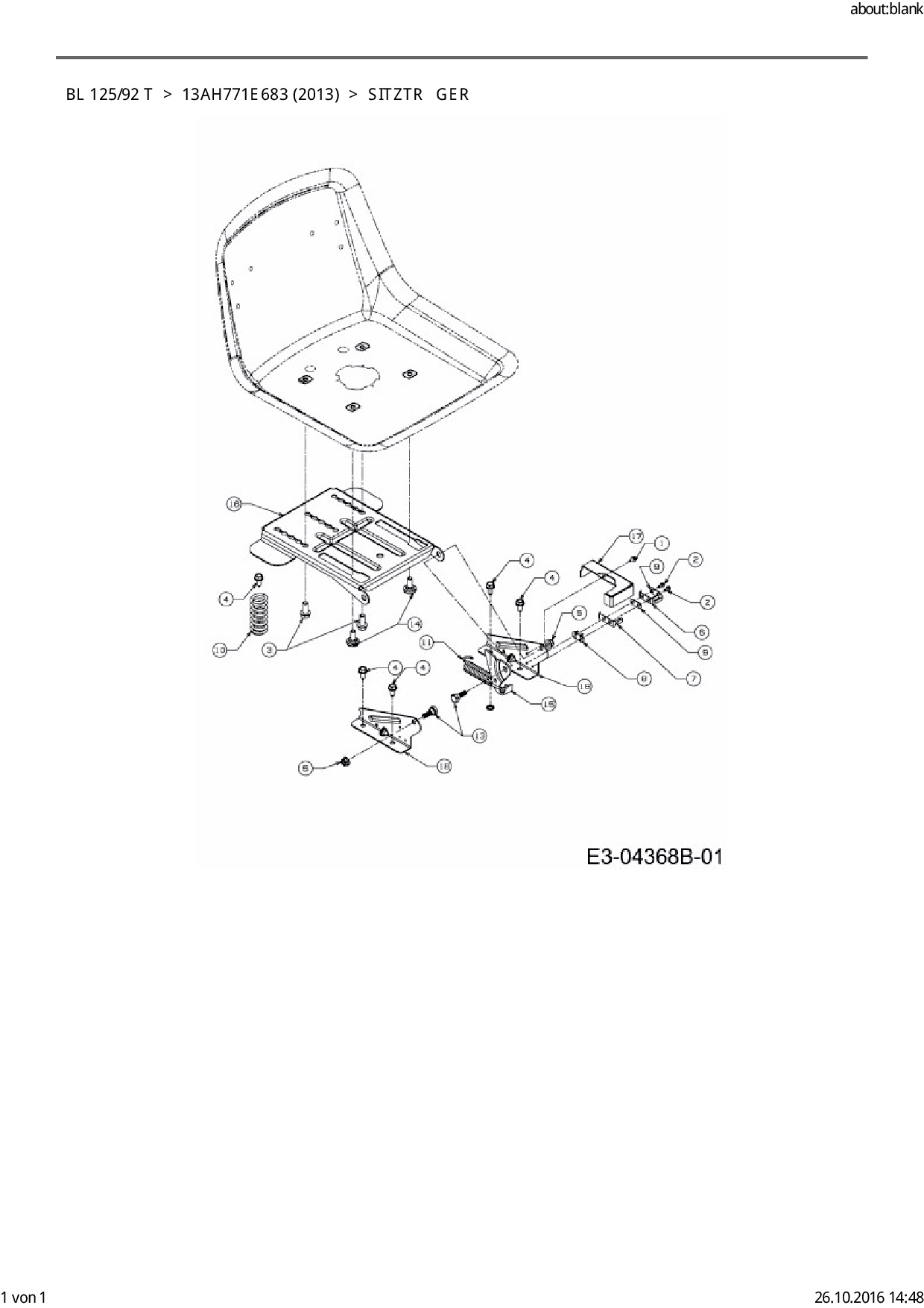 Ersatzteile für Rasentraktor Black-Line BL 125/92 T aus der Zeichnung Sitzträger:
