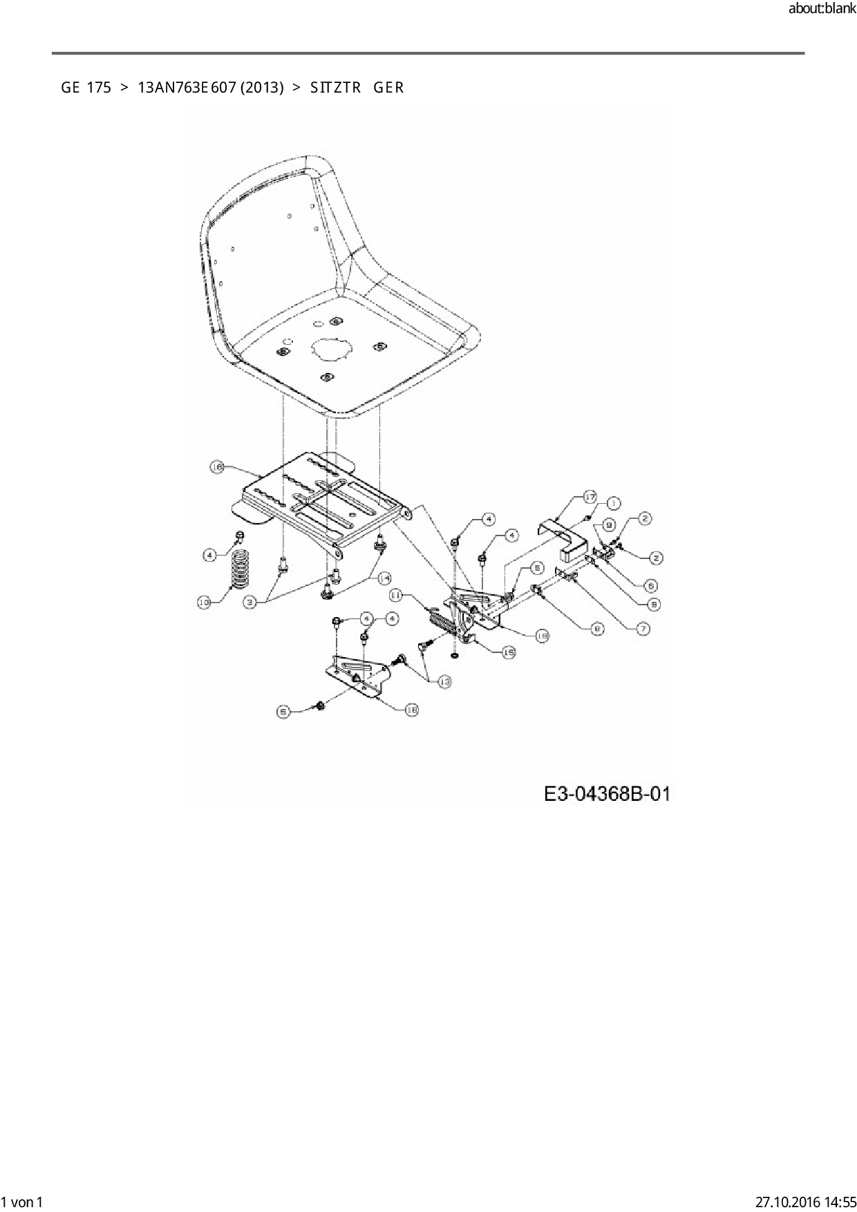Ersatzteile für Rasentraktor Blisar GE 175 aus der Zeichnung Sitzträger: