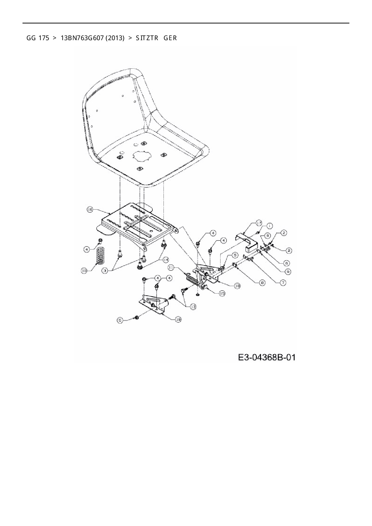 Ersatzteile für Rasentraktor Blisar GG 175 aus der Zeichnung Sitzträger:
