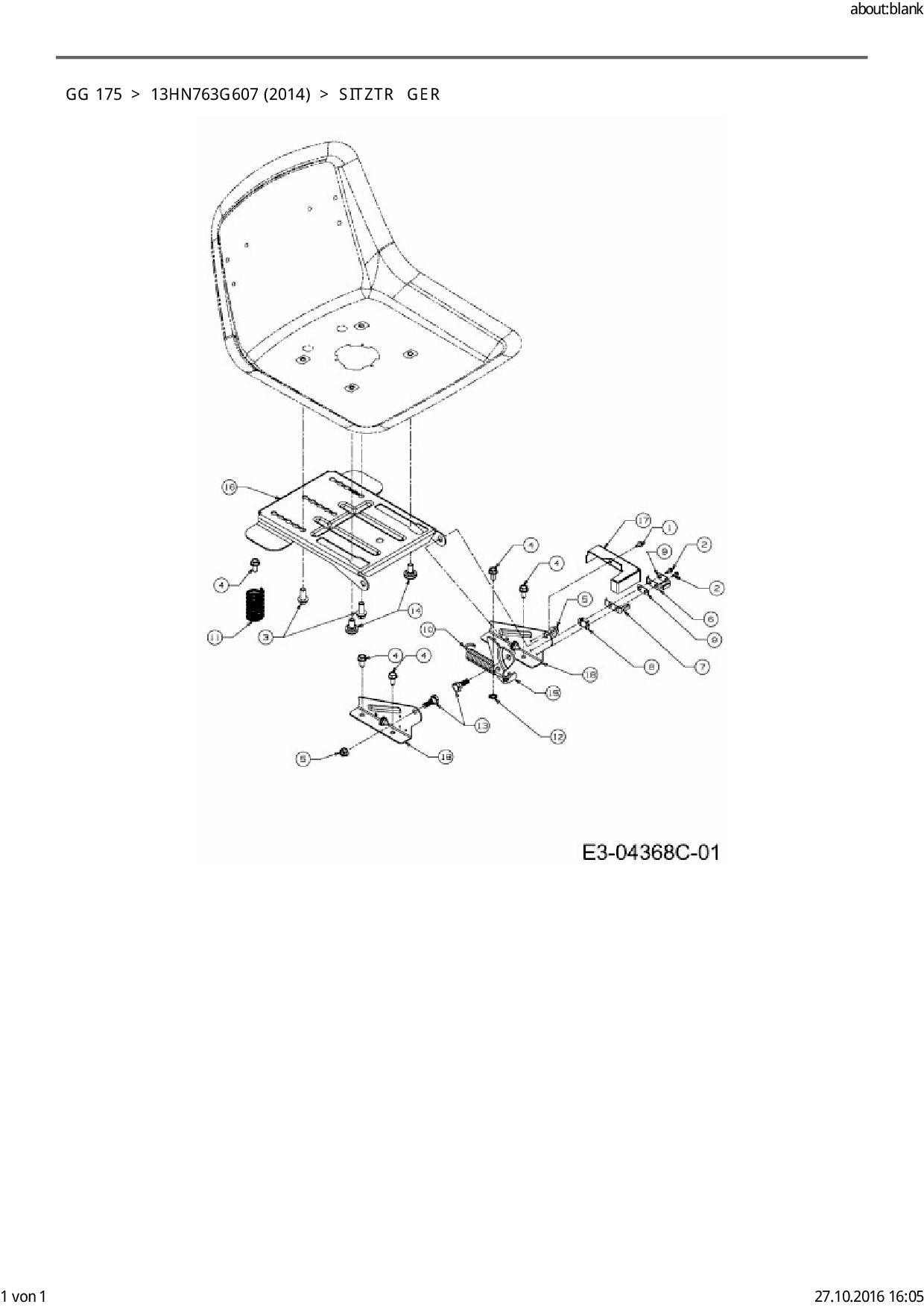 Ersatzteile für Rasentraktor Blisar GG 175 aus der Zeichnung Sitzträger: