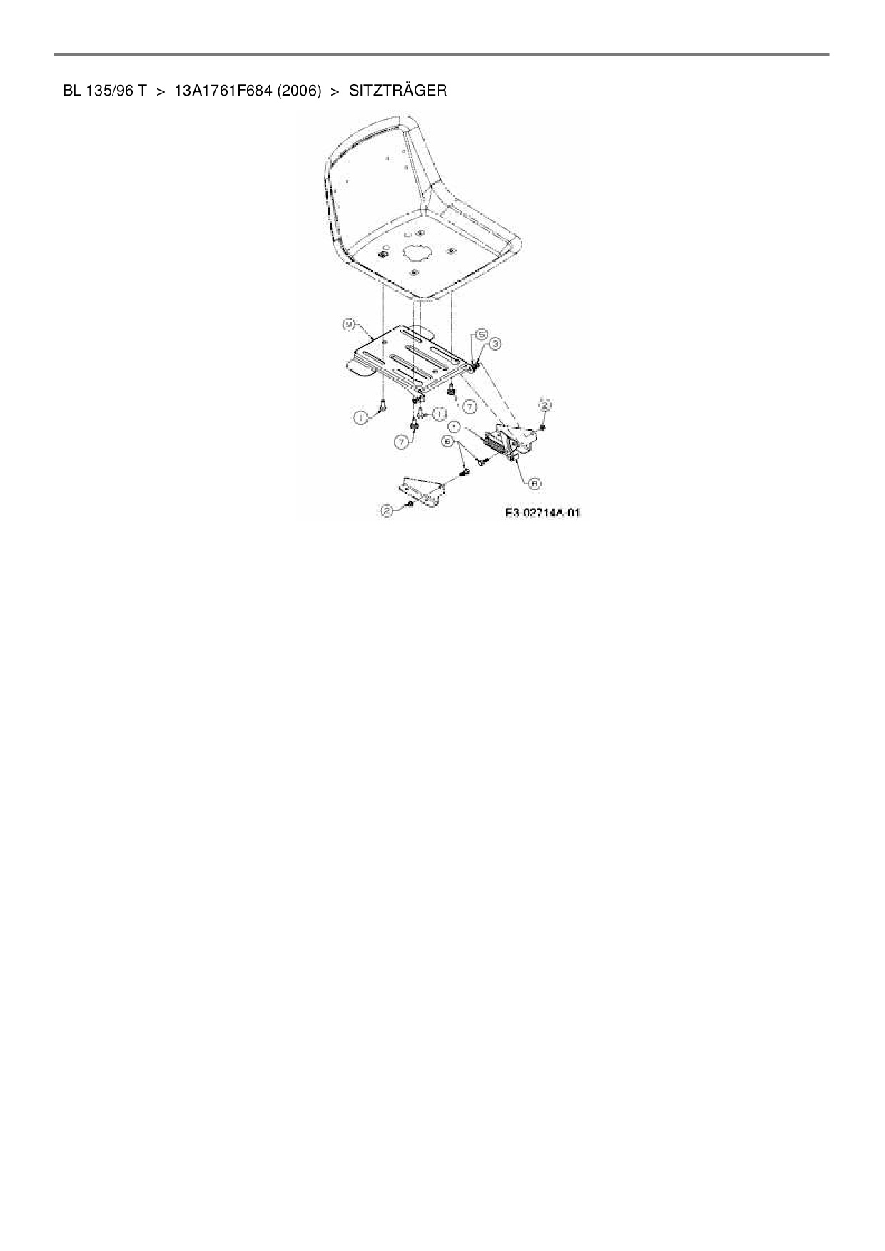 Ersatzteile für Rasentraktor Bolens BL 135/96 T aus der Zeichnung Sitzträger: