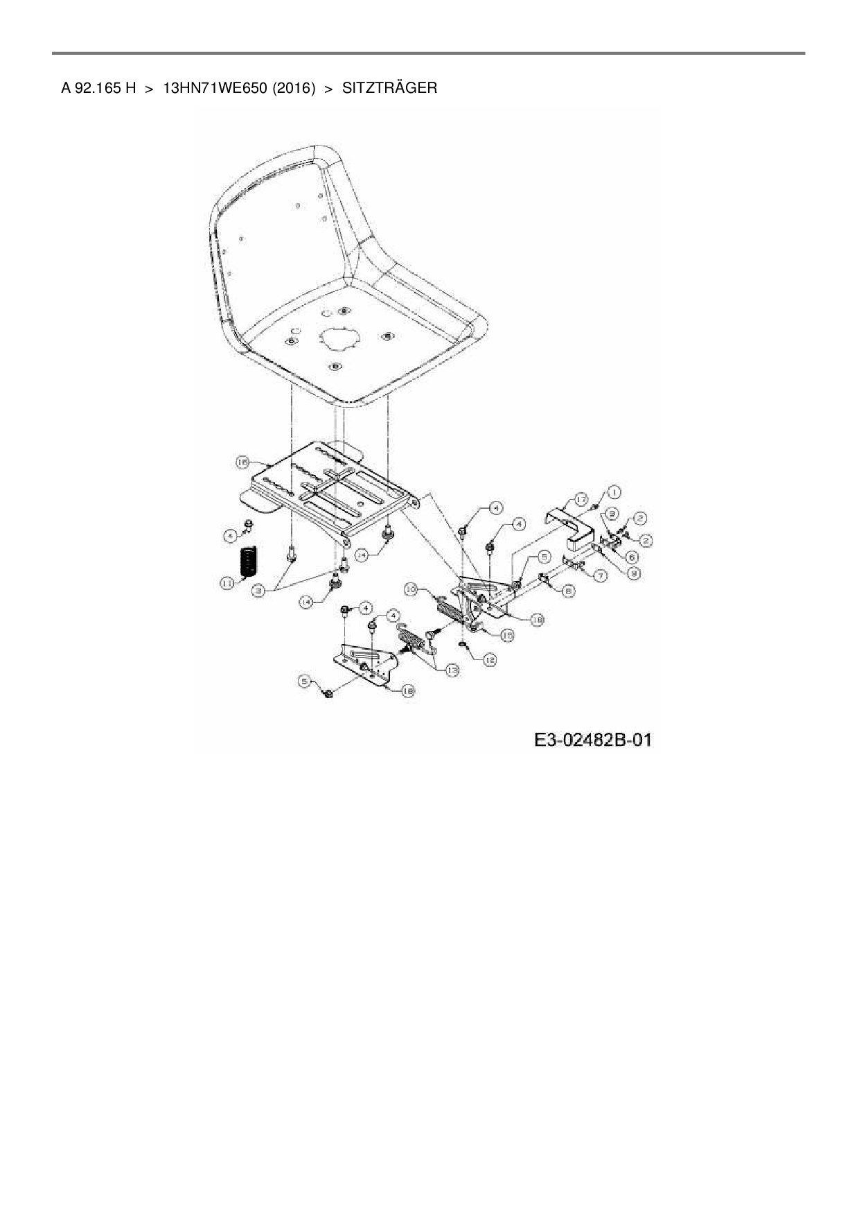 Ersatzteile für Rasentraktor Wolf-Garten A 92.165 H aus der Zeichnung Sitzträger: