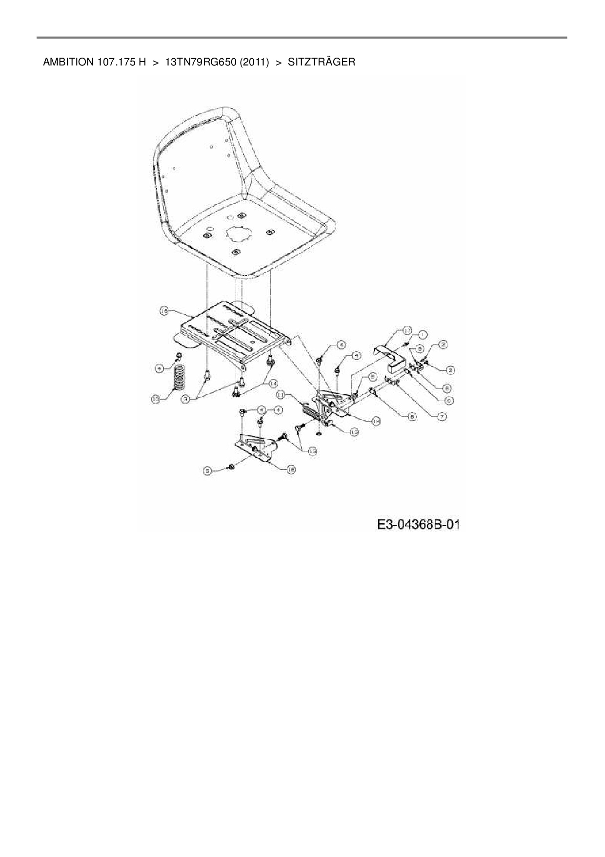 Ersatzteile für Rasentraktor Wolf-Garten Ambition 107.175 H aus der Zeichnung Sitzträger: