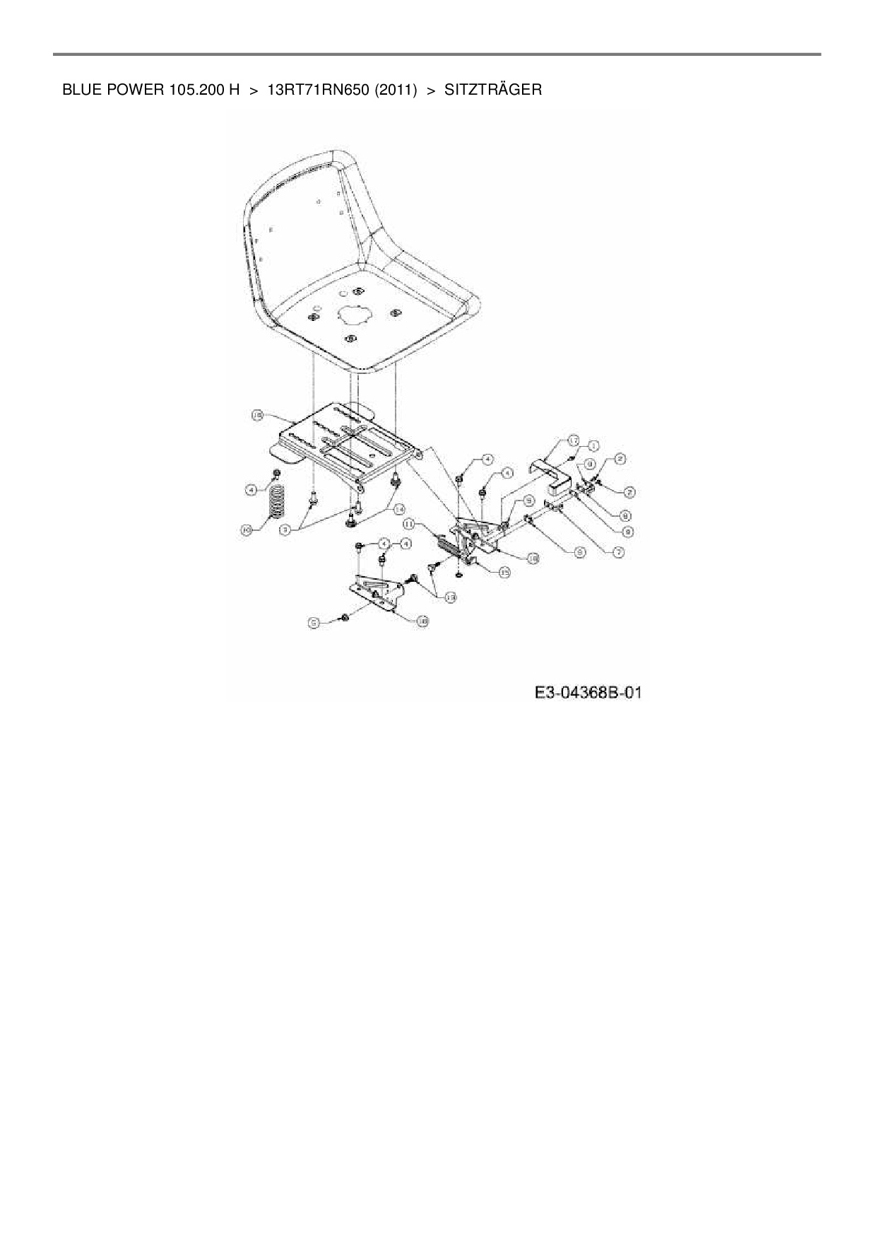 Ersatzteile für Rasentraktor Wolf-Garten Blue Power 105.200 H aus der Zeichnung Sitzträger: