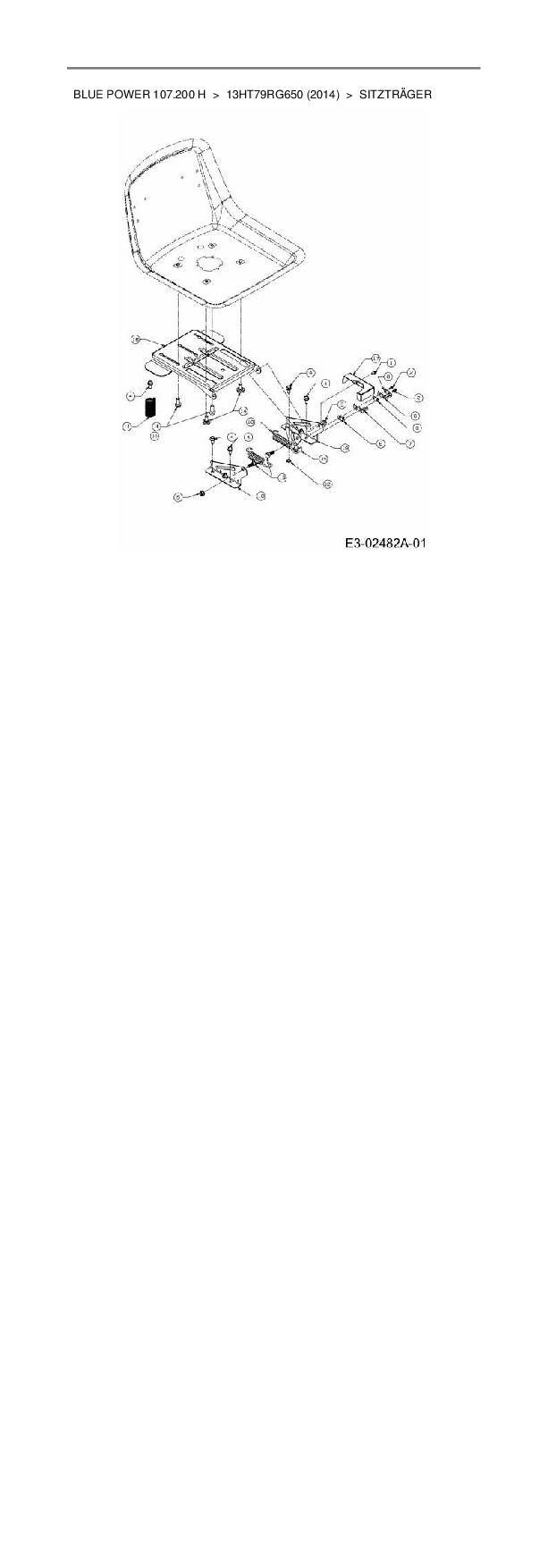Ersatzteile für Rasentraktor Wolf-Garten Blue Power 107.200 H aus der Zeichnung Sitzträger: