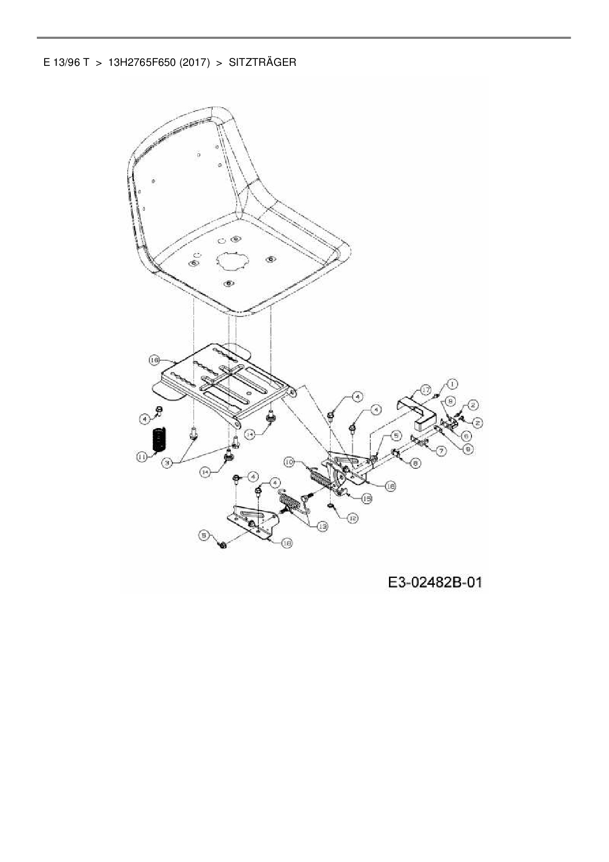 Ersatzteile für Rasentraktor Wolf-Garten E 13/96 T aus der Zeichnung Sitzträger: