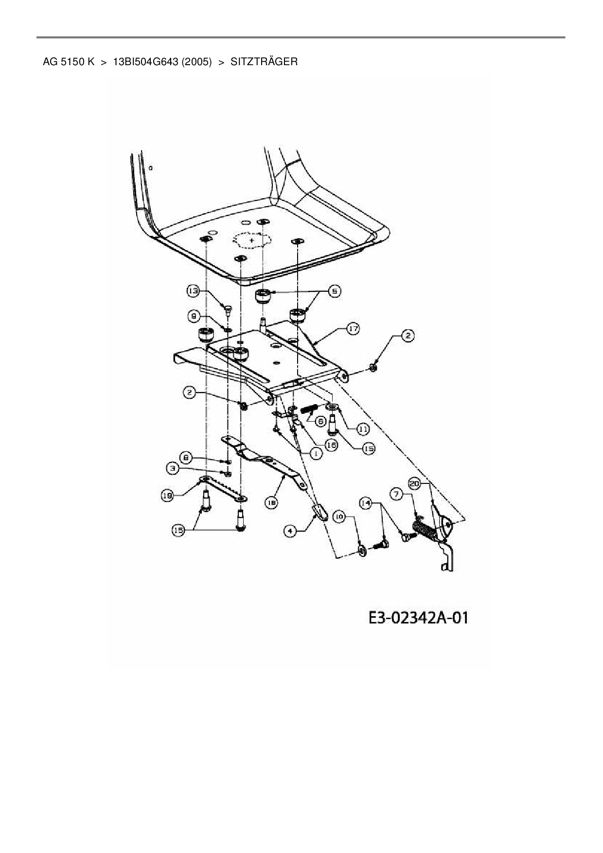 Ersatzteile für Rasentraktor Yard-Man AG 5150 K aus der Zeichnung Sitzträger: