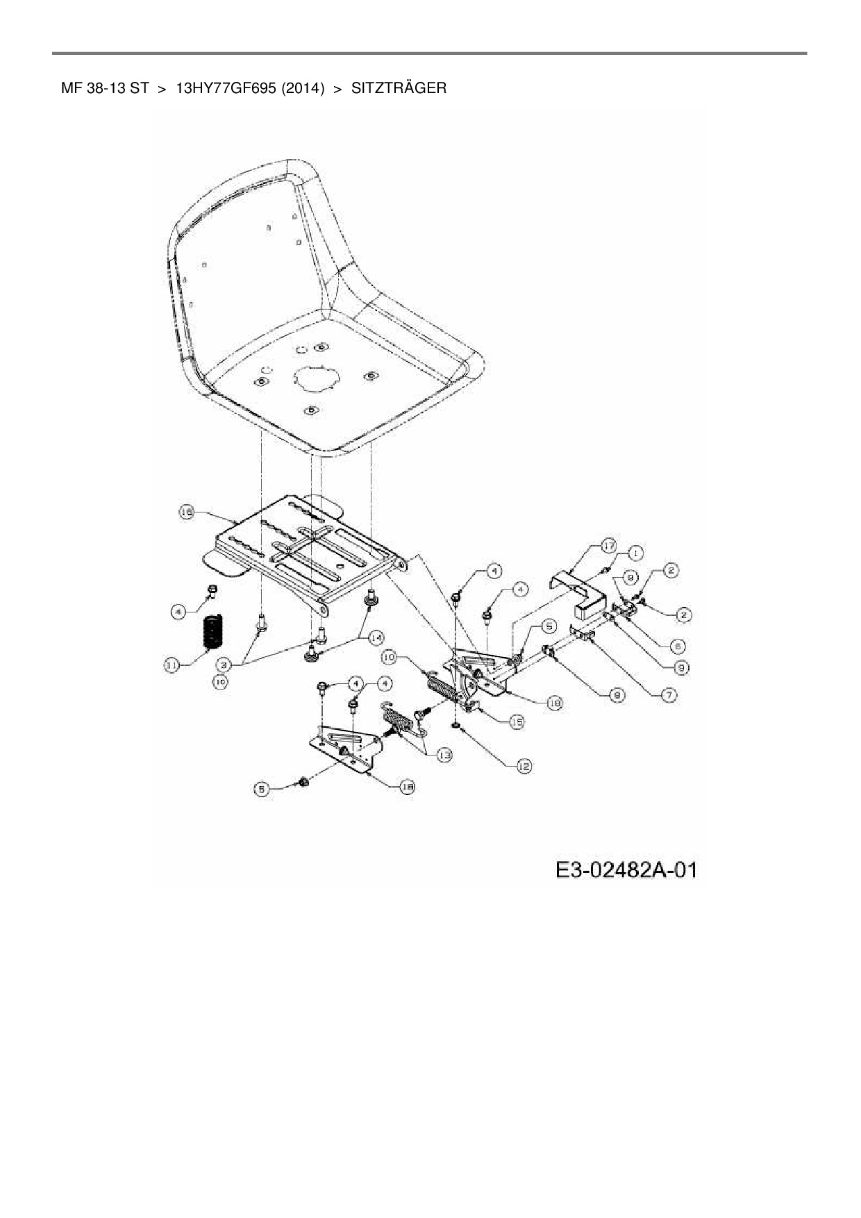 Ersatzteile für Rasentraktor Massey Ferguson MF 38-13 ST aus der Zeichnung Sitzträger: