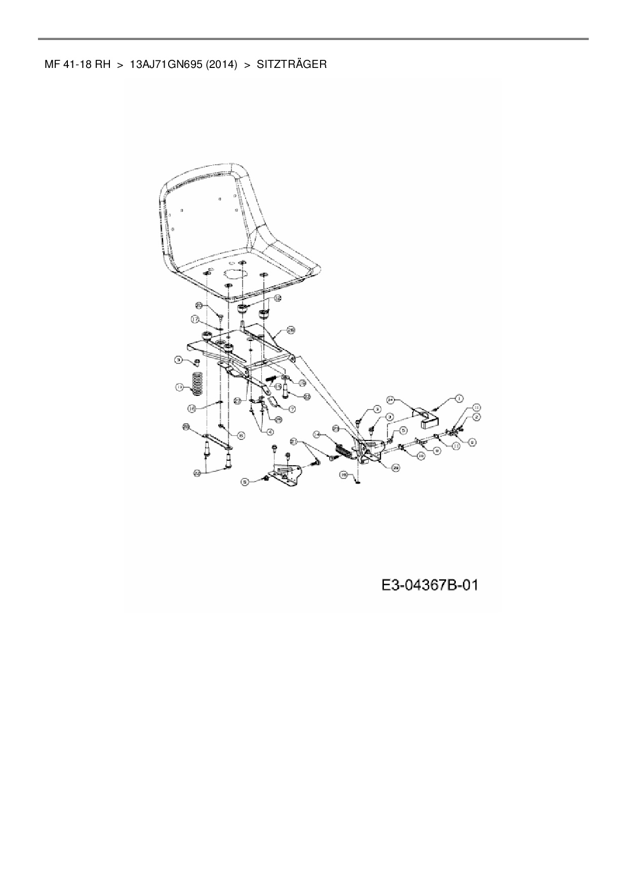 Ersatzteile für Rasentraktor Massey Ferguson MF 41-18 RH aus der Zeichnung Sitzträger: