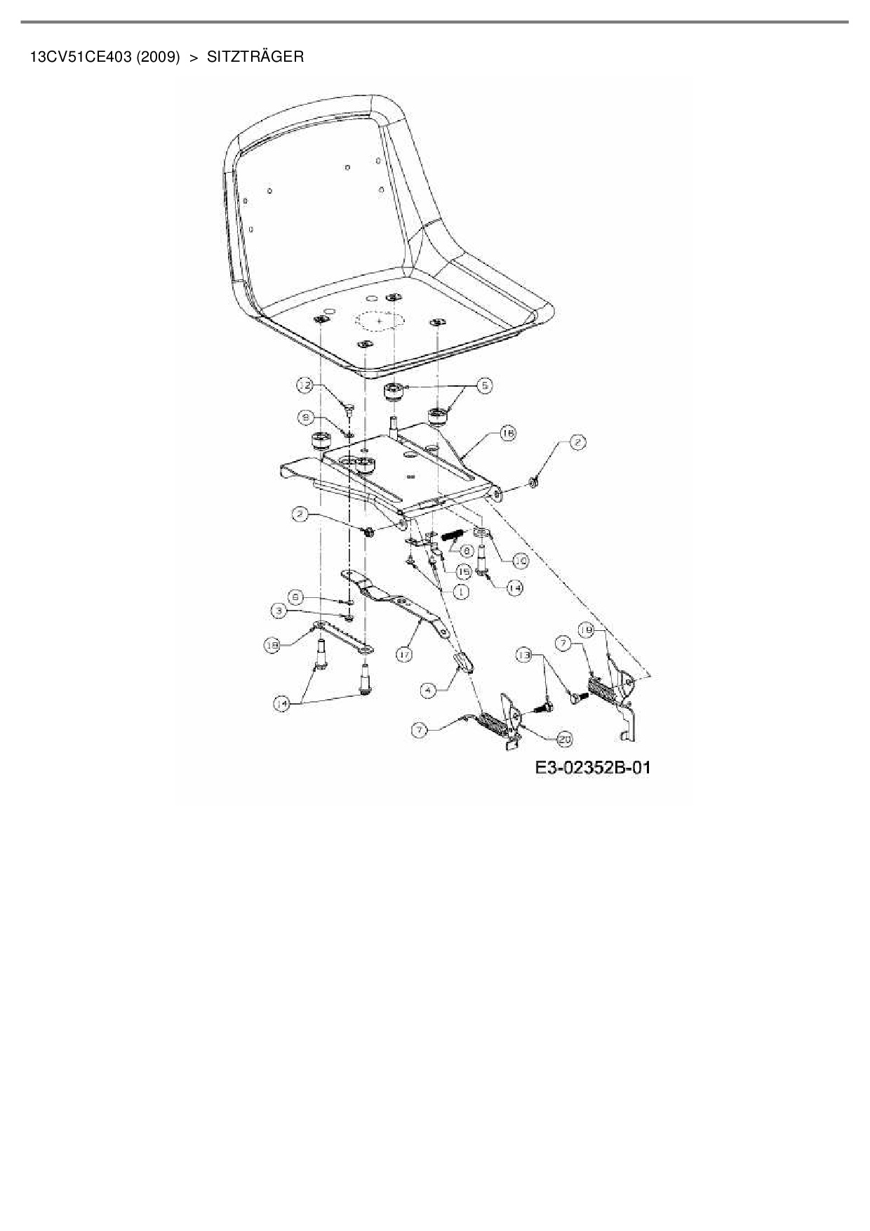 Ersatzteile für Rasentraktor Cub Cadet CC 1015 RD-E aus der Zeichnung Sitzträger: