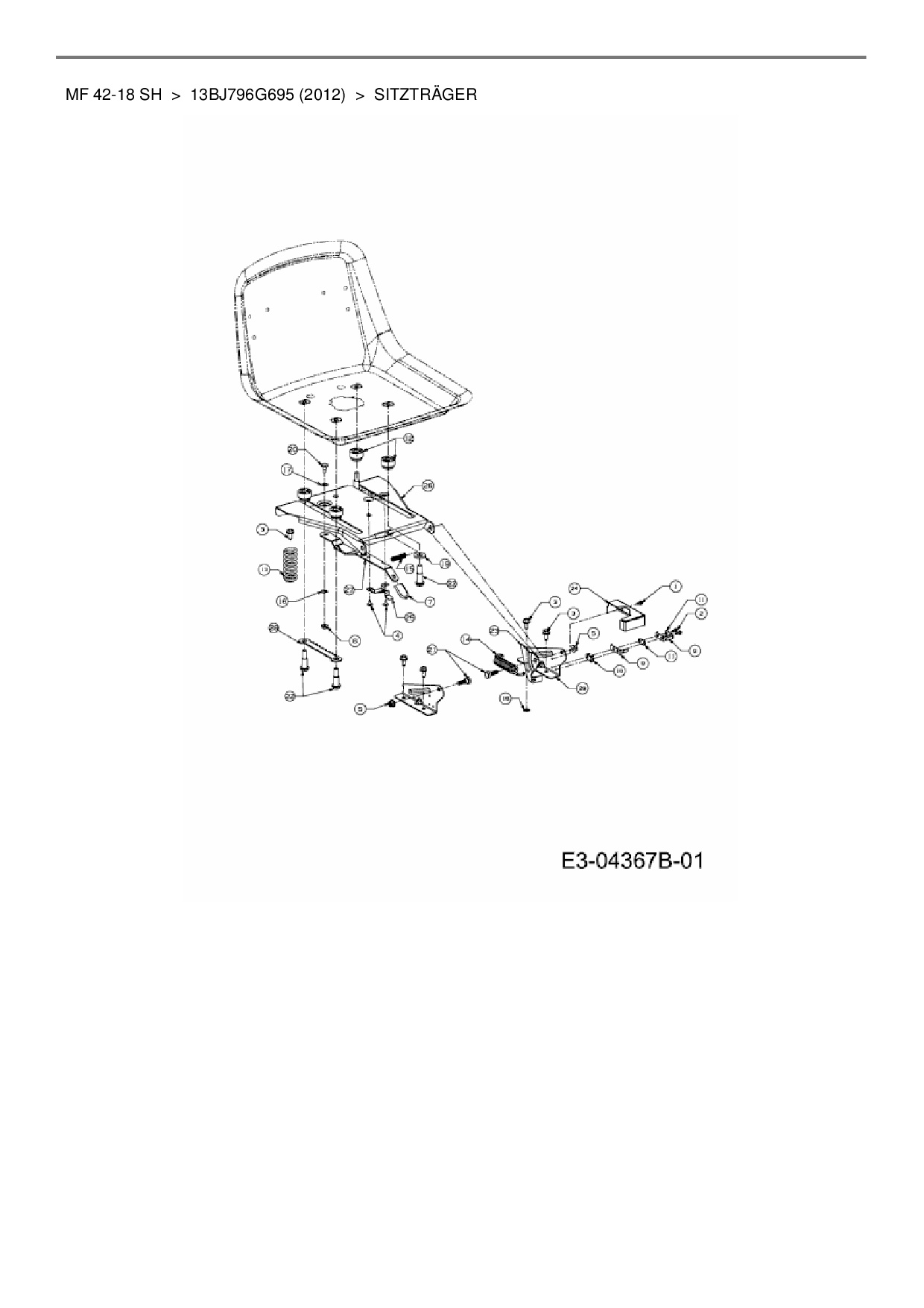 Ersatzteile für Rasentraktor Massey Ferguson MF 42-18 SH aus der Zeichnung Sitzträger: